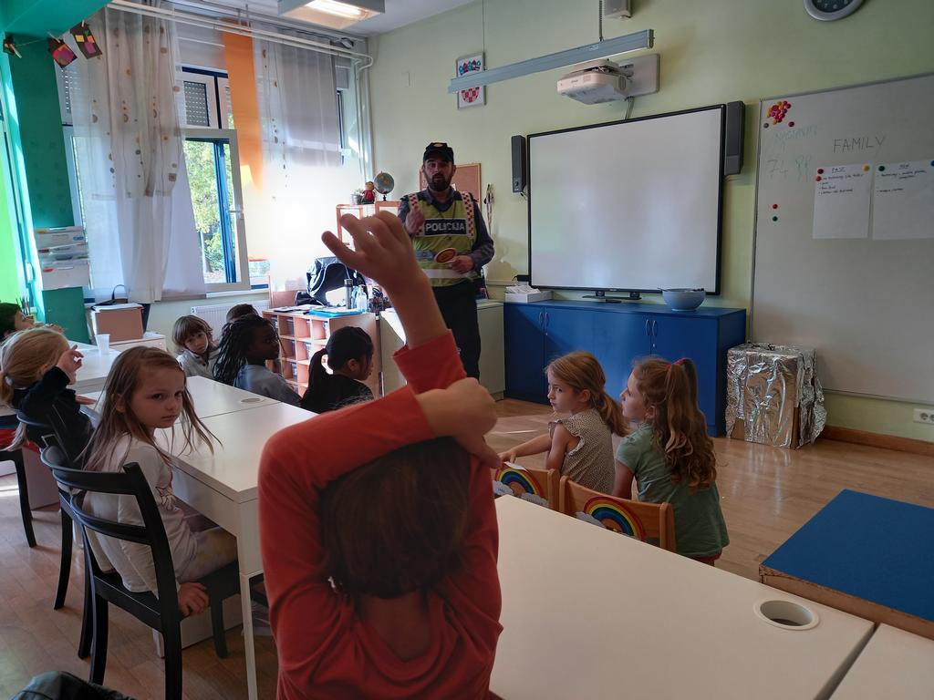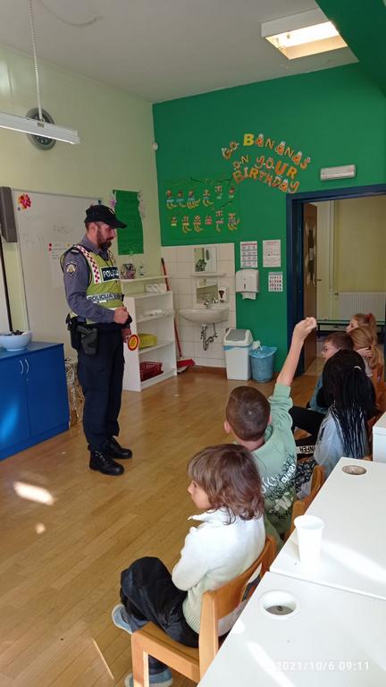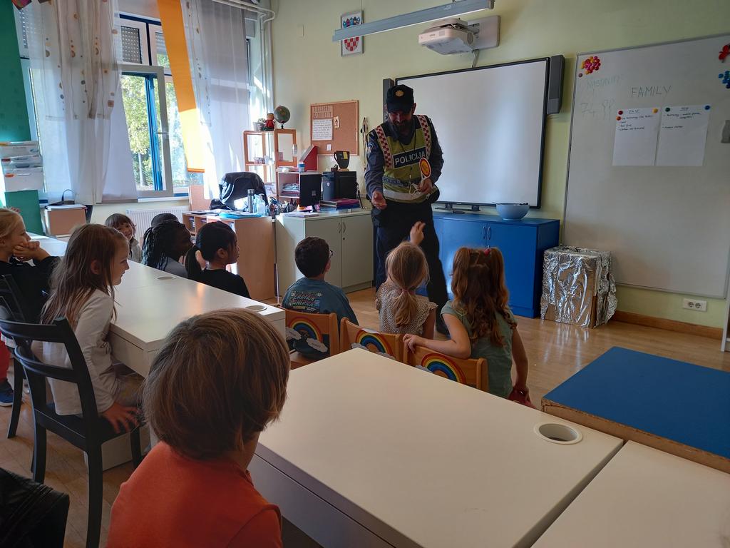 On 6 October we had a very special visit from our local police officer. We talked about traffic and traffic lights. He explained why they are important and reminded us to respect the traffic rules. Like real inquirers, we had so many questions for the policeman and he was very kind and answered all of them.