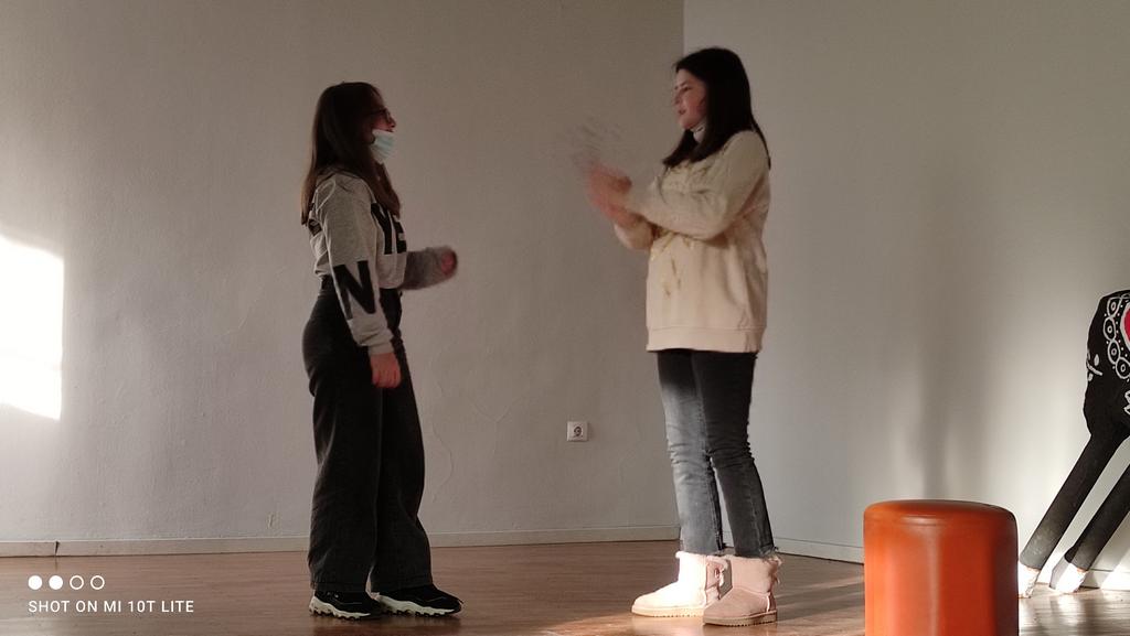 Are you ready to act? Drama students had an interesting task: name a place, situation and feelings and try to act it on a stage. Some of them were in the theatre, the others got an uninvited guests for a dinner and they didn't have any bread so they had to go to their neighbors to lend some, some drove a taxi with the customer who didn't have any money, the others worked in kindergarten.. etc. It was so funny just preparing for their scenes… Parts of it were maybe even difficult but I can say that the task was really challenging and the students made it excellently.