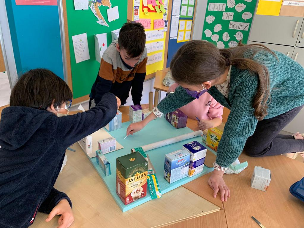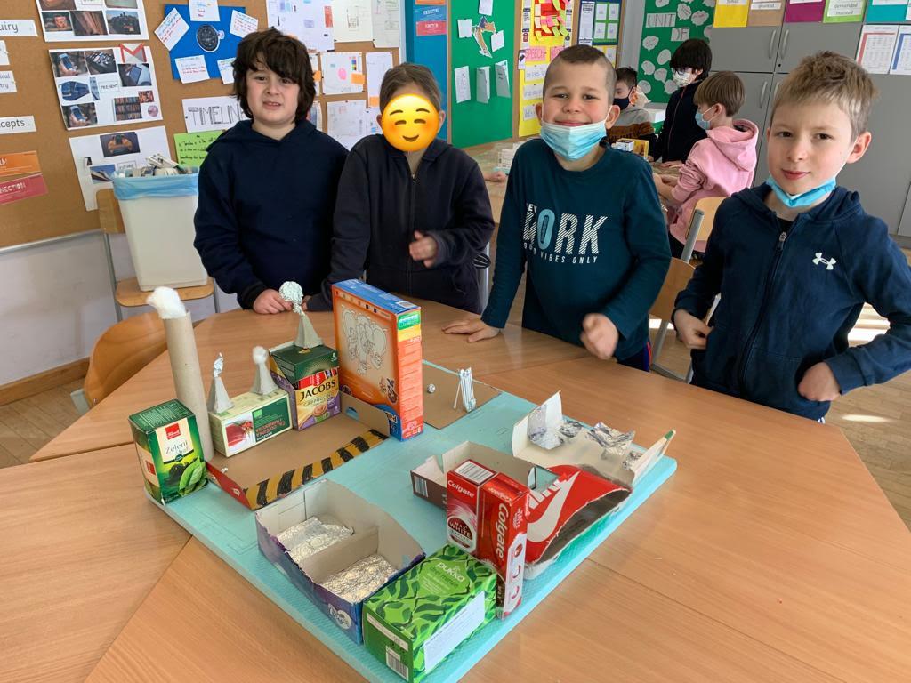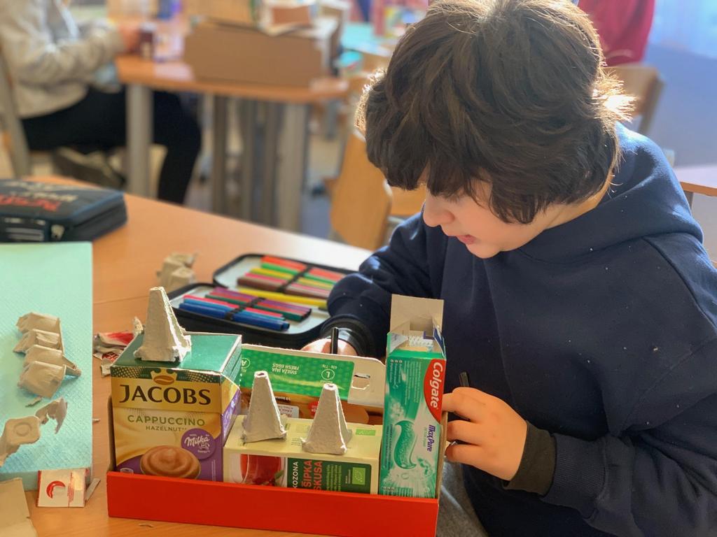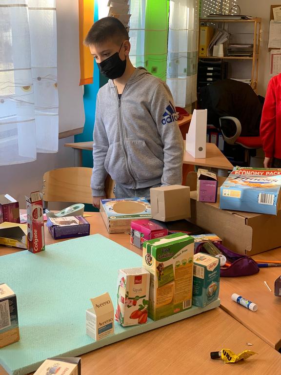 Today, we started designing a model of our imaginary town. Planning, sketching and creating buildings, theatres, shops, factories out of cardboard boxes was exactly as fun as one would imagine! The morning just flew by, and the towns kept growing. Since this is just the beginning and we still have a lot of work to do, stay tuned!