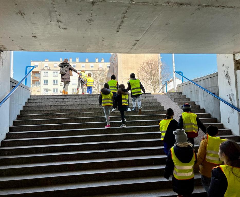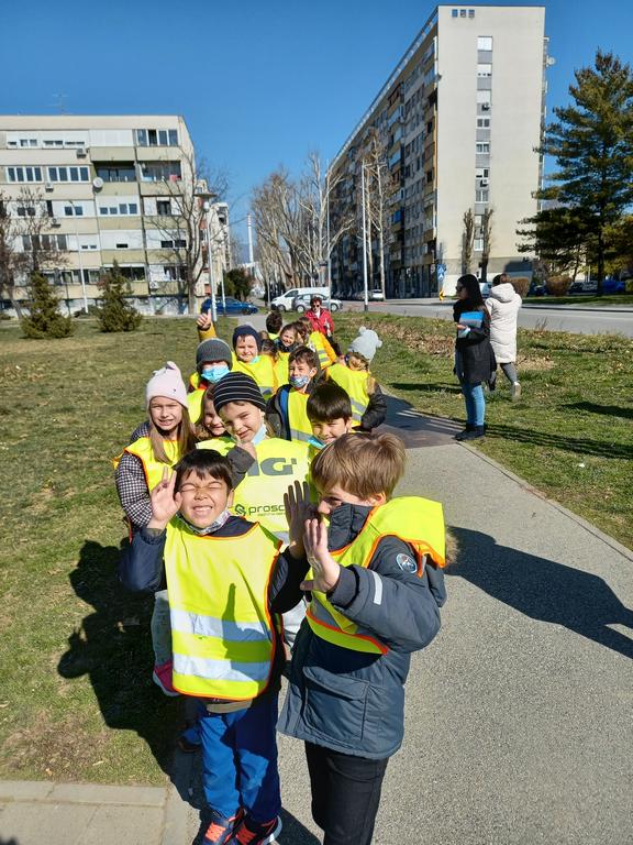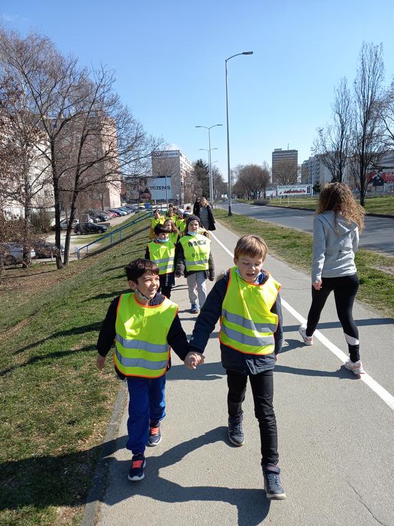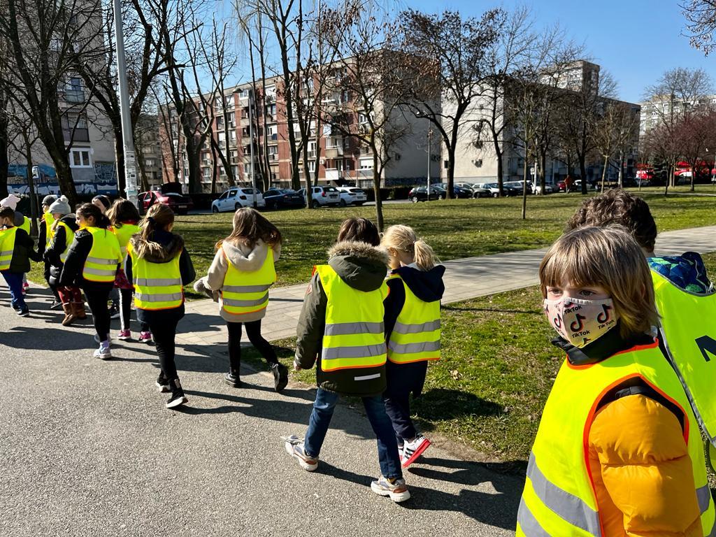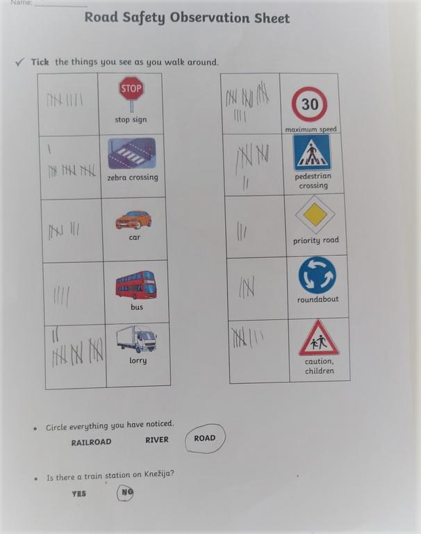 First, we revised the three steps for safe road crossing – stop, look and listen! Teachers took the observation sheets and we started walking carefully around the block. We paid attention to all the traffic signs we saw on our way, we noticed how vehicles and pedestrians use roads, sidewalks, roundabouts, etc.