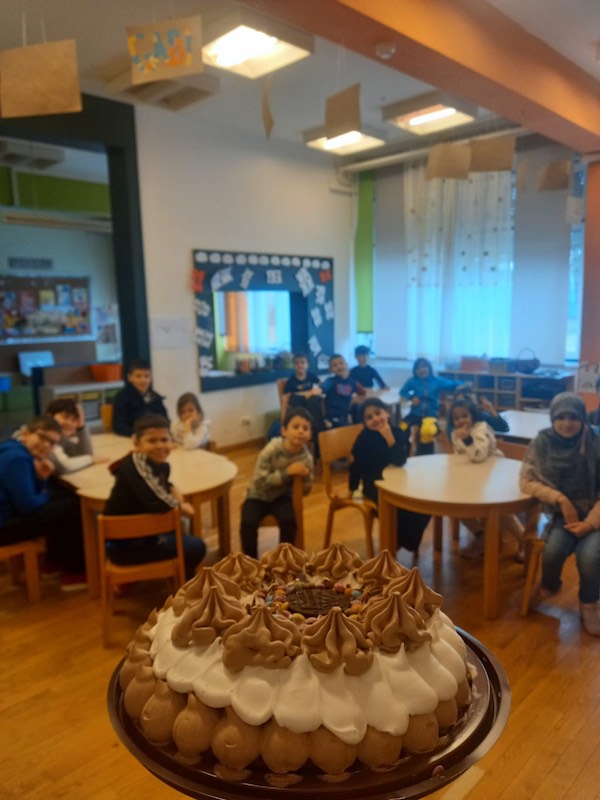 When we came back to school there was a cake waiting for us since tomorrow our school celebrates its birthday.