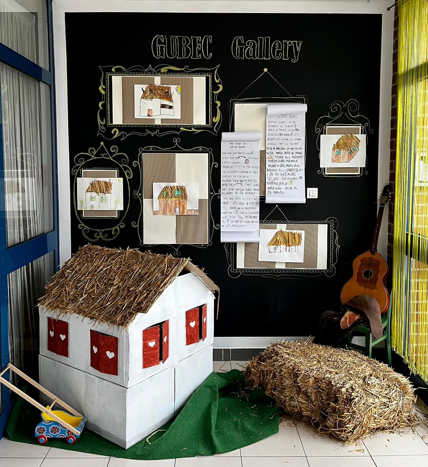 Our school was named after Matija Gubec, a well-known fighter for justice. He was a peasant who fought for peasant rights. He had a big black moustache and lived in Medieval times. At that time the houses were small, with straw on the roof. People did not have a lot of money. They inspired us to build our house from paper and straw.