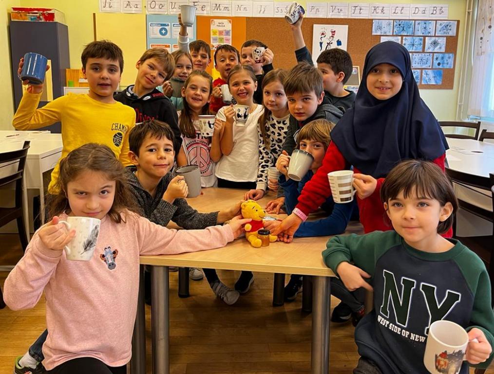 Since Winnie is our class pet, and it is well-known that he is a book lover, we decided to make a cozy book tea party. Our teachers made us delicious tea with honey and lemon and gave us some cookies that go perfectly with it. We listened to the story and enjoyed tea and cookies.