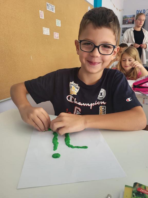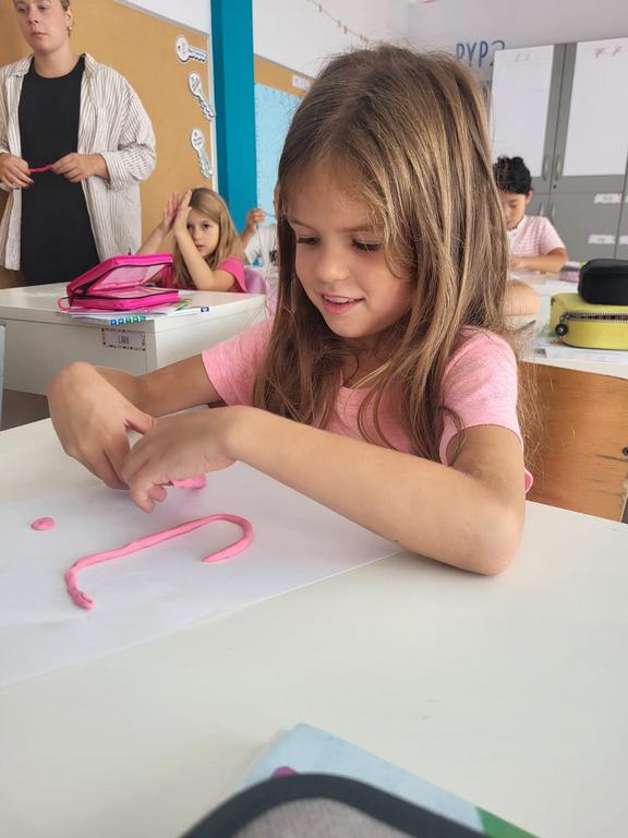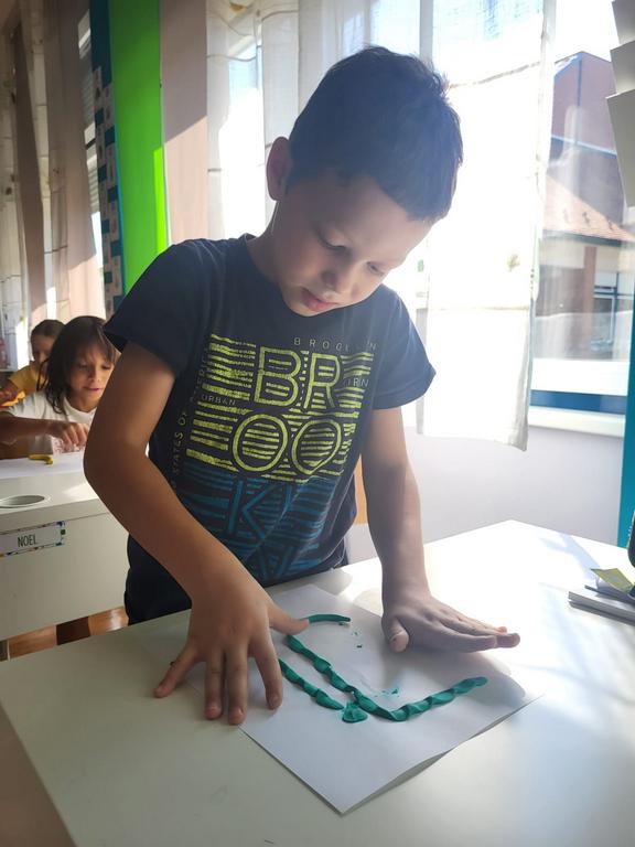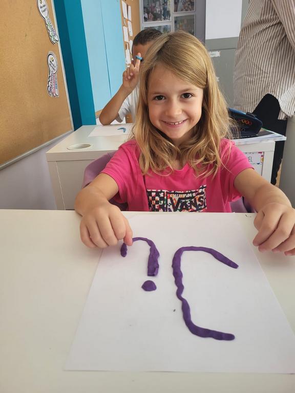 Play-doh is helping us shape them and memorise what they look like. We love this fun, yet educational way of learning letters.