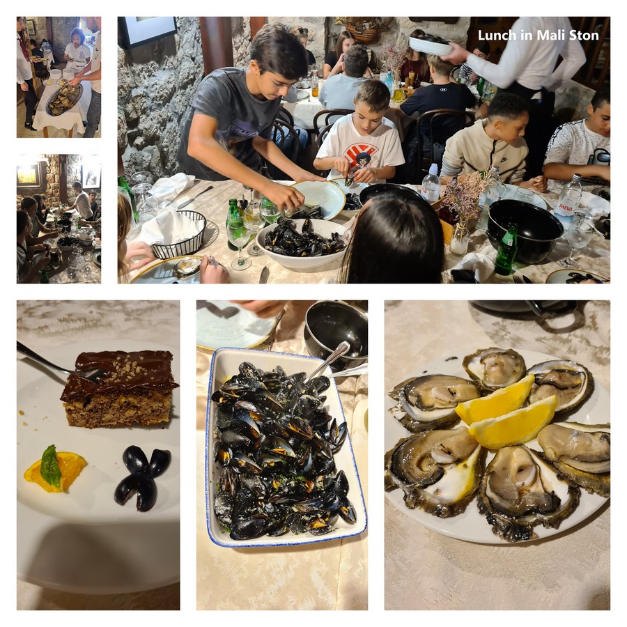 In Ston we visited the Ston salt work and the Ston Walls that were built in the 14th century to protect the salt fields and the Dubrovnik Republic. We walked the wall from Ston to Mali Ston. Most of the route was quite steep and narrow, but the view was spectacular. When we arrived to Mali Ston, we took a boat ride through the Mali Ston Bay and enjoyed the untouched natural beauty. The boat ride took us to the oyster beds where we had a small presentation on how oysters were grown and harvested. We had a chance to taste oysters as well. After the boat ride we enjoyed mussels, oysters and seafood risotto for lunch.