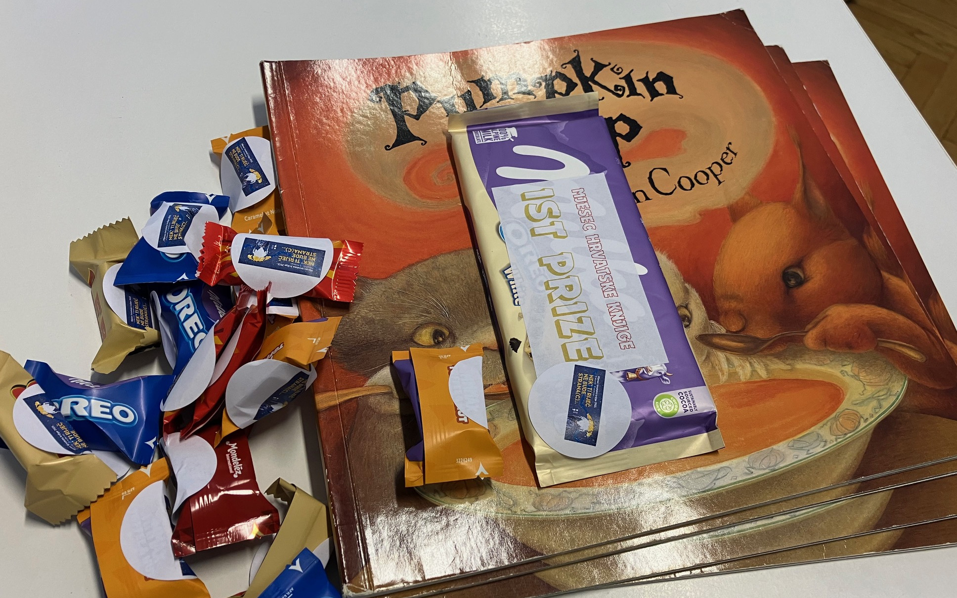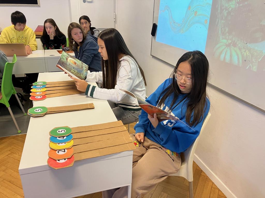The MYP students participated in "Translation Competition" . Facing the two-member jury they did their best trying to directy translate page by page of Helen Cooper's Pumpkin Soup. We had a class winner in each class who won the special sweet prize.