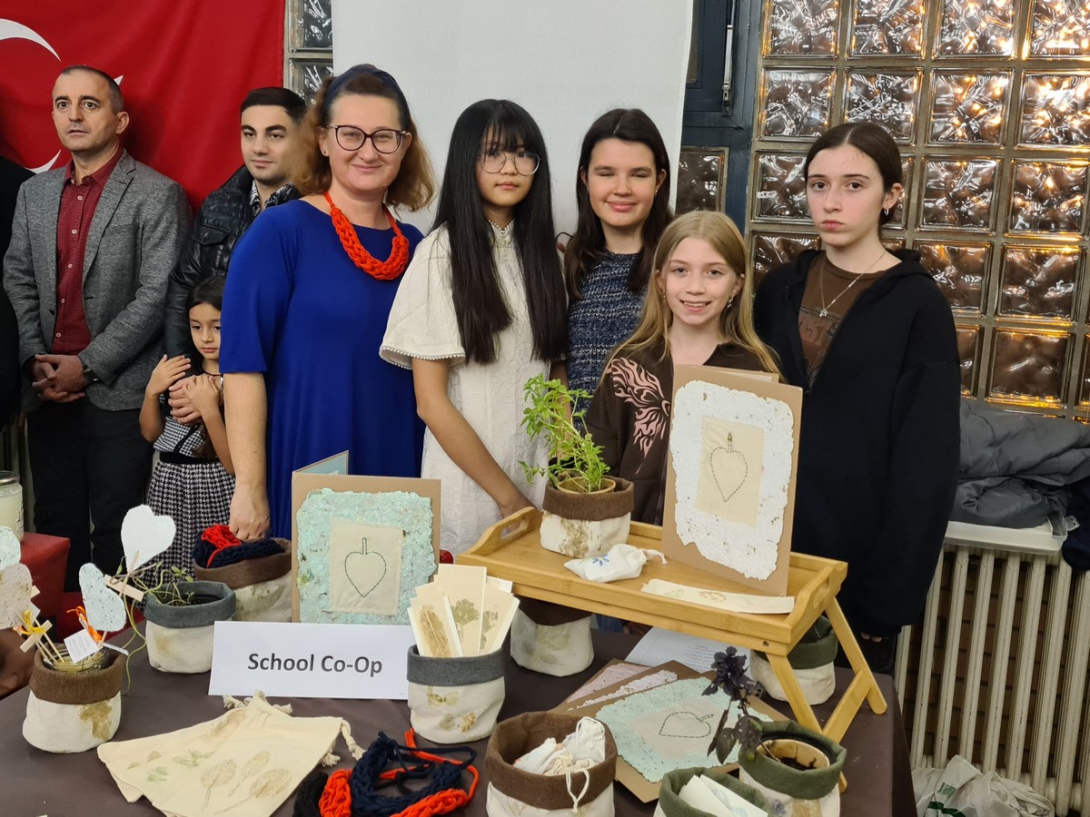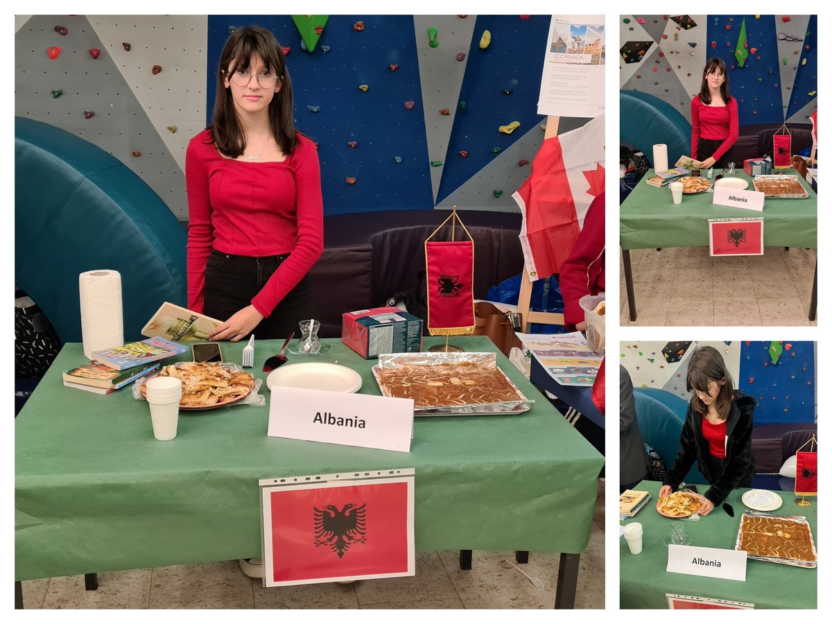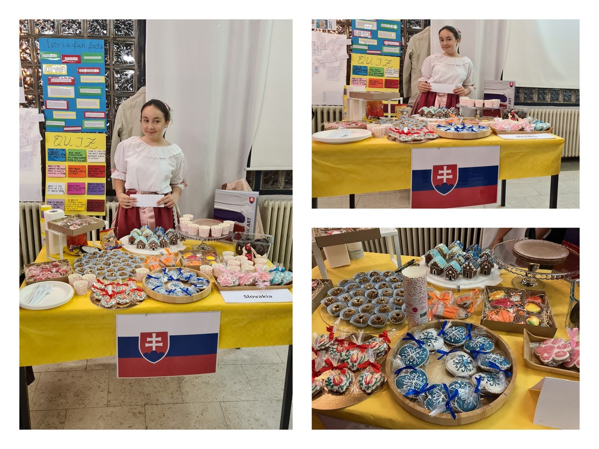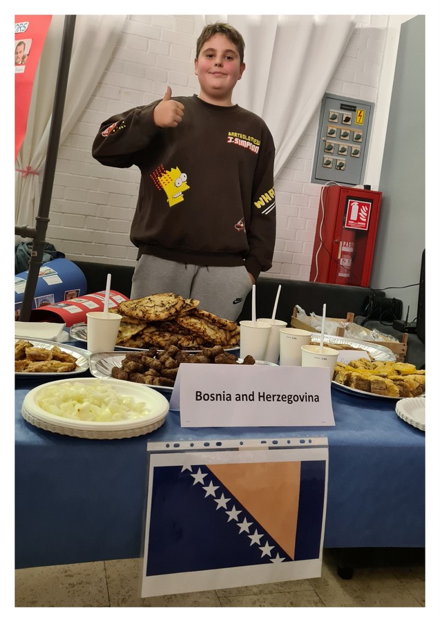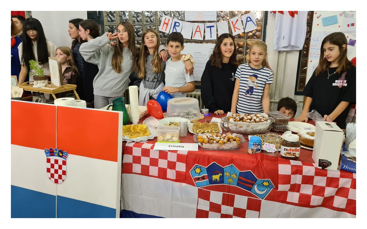 It started with a welcoming speech and an African greeting dance performed by PYP1 students. The students and parents hosted beautifully decorated stalls with displays, food and music showcasing the richness of cultural differences amongst the school population. They baked national food, wore national costumes, taught us how to play some of their traditional games and showed us some of their sacred texts, brochures, maps and posters about their culture. We travelled the world by visiting the 18 countries represented in the main hall: Albania, Bosnia and Herzegovina, Canada, China, Croatia, Germany, India, Iran, Israel, Italy, Kosovo, the Netherlands, North Macedonia, Poland, Slovakia, Switzerland, Tűrkiye and USA. In Iran we tried to read the Persian letters, in Poland we learnt about famous Polish scientists and artists, in Croatia we played BINGO and as the prizes we got their homemade bracelets and bookmarks in Croatian flag’s colours. In India we tried on a traditional Sari dress and a Bindi.