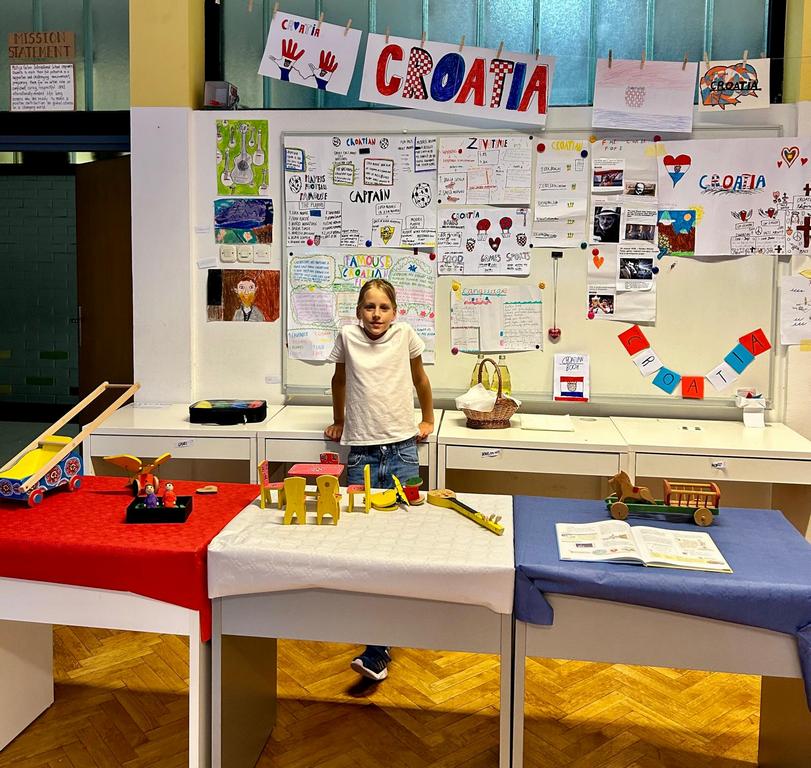 On a cloudy afternoon of May 28th, we, the Pyp 3 students, presented a Culture Unit to our parents and siblings. Our class was grouped into ten groups, researched, and then presented information on the following countries: Romania, Ukraine, Macedonia, Iran, Switzerland, USA, Great Britain, Turkey, Netherlands, and Croatia. We found information about each country and explored the types of games they have, languages spoken, famous sports, traditional clothing, popular food, and religion, which were the main points of research.