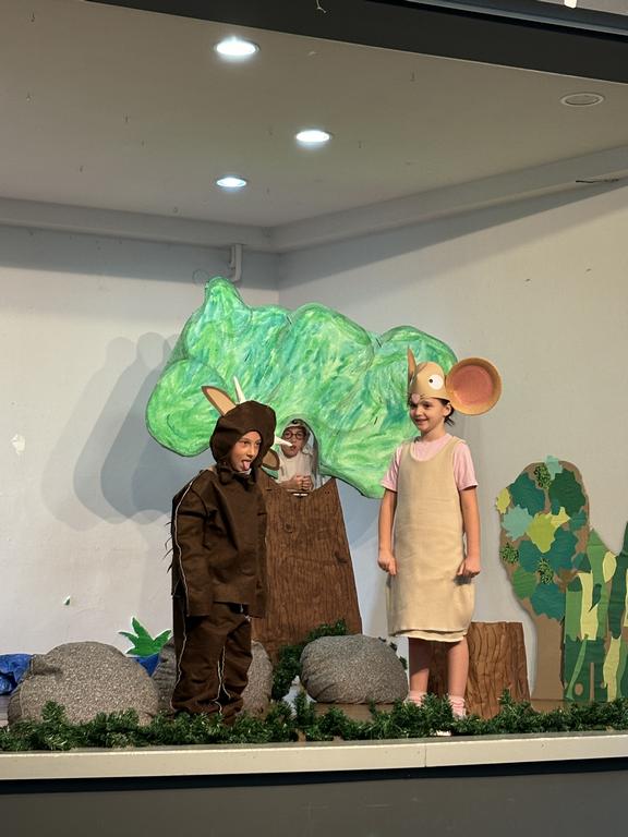 The young performers brought the story to life with colorful costumes, creative sets, and expressive acting. From the clever mouse to the fearsome Gruffalo, each student delivered their lines with enthusiasm and confidence, making the audience laugh and cheer.