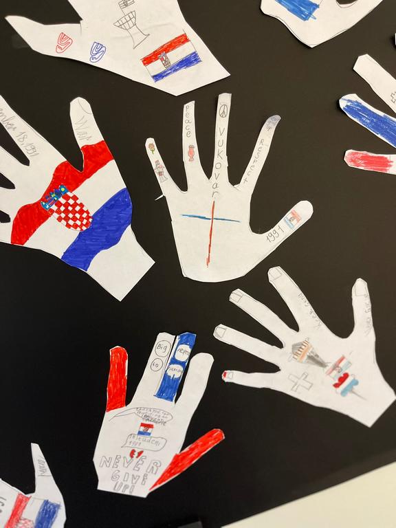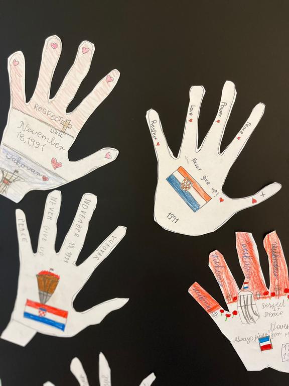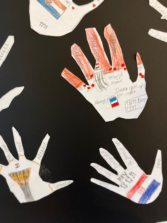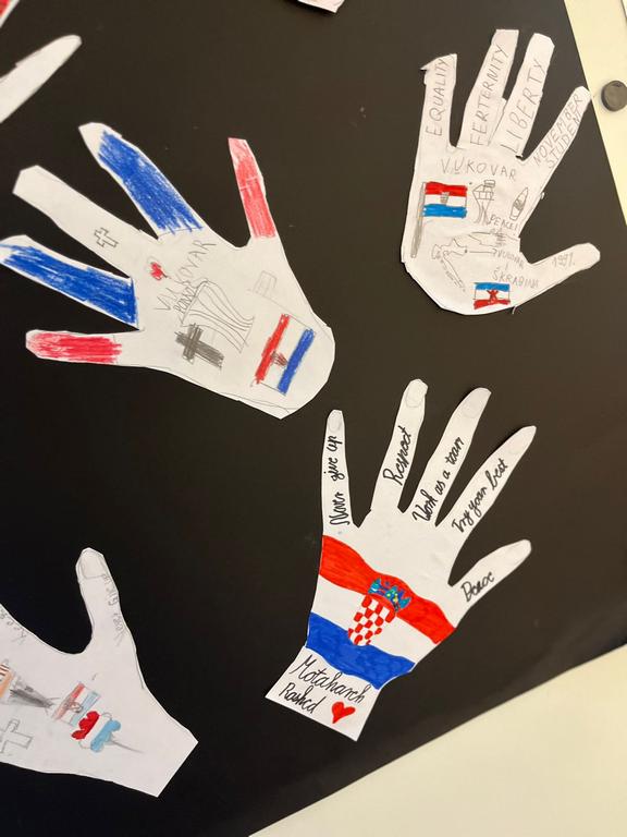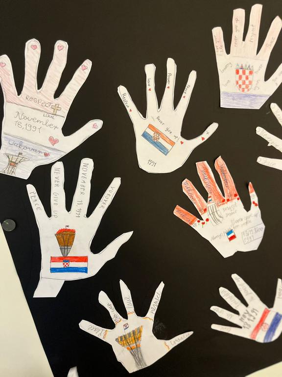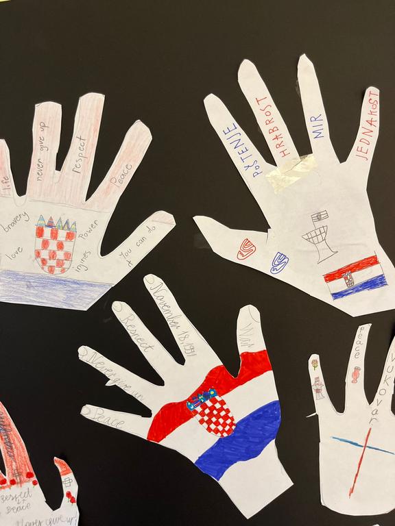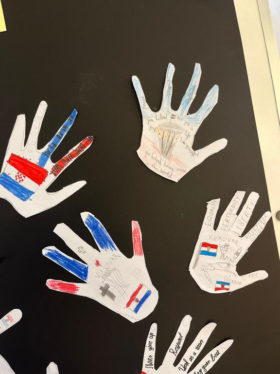 In a heartfelt act of remembrance, the PYP4 students honored the victims of Vukovar and Škabrnja with a creative and touching project. The students crafted paper handprints, each adorned with kind and compassionate words such as "love," "peace," "hope," and "unity." This activity aimed to symbolize solidarity and promote the importance of empathy and understanding among young learners.