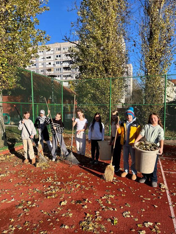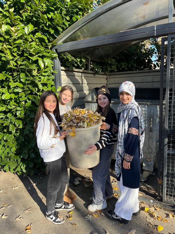 The PYP4 girls showed great teamwork and responsibility by cleaning the school yard. Armed with rakes and brooms, they worked together to gather fallen leaves, keeping the yard tidy and welcoming.