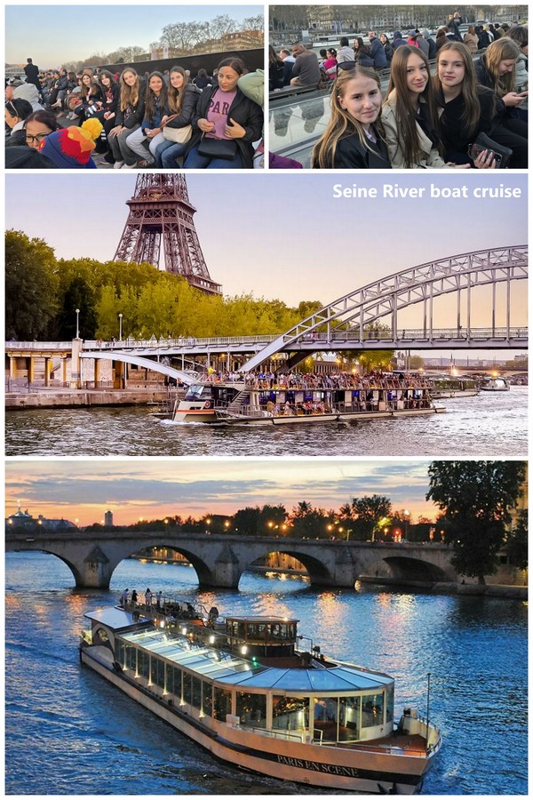 Upon arriving in Paris, we immediately embarked on a bus tour that took us around the city. We saw many famous landmarks, including the Eiffel Tower, Place de la Concorde, Notre-Dame Cathedral, Les Grands Boulevards, Opéra Bastille, Trocadéro, and Le Dôme des Invalides. We took a stroll down the vibrant Champs-Élysées to the Arc de Triomphe. We also passed the Eiffel Tower again on our way to the Seine River boat cruise. During the boat ride, we enjoyed breathtaking views of Paris and all the lights that surrounded us as night approached. At the very end of our journey, we watched the Eiffel Tower sparkle. After the cruise, we had dinner before taking the metro back to our hotel.