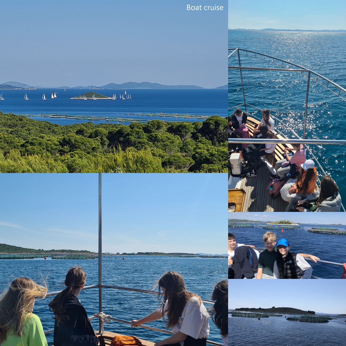 On the first day, we took a boat ride through the Biograd Aquatorium, enjoying the beautiful scenery and islands like Murter and Pašman. We visited caged fish farms and continued to the island of Vrgada, where we learned that the island has no vehicles and only around 100–200 residents. There is a small school on the island with just eight students attending. It was interesting to see such a peaceful and unique way of life.