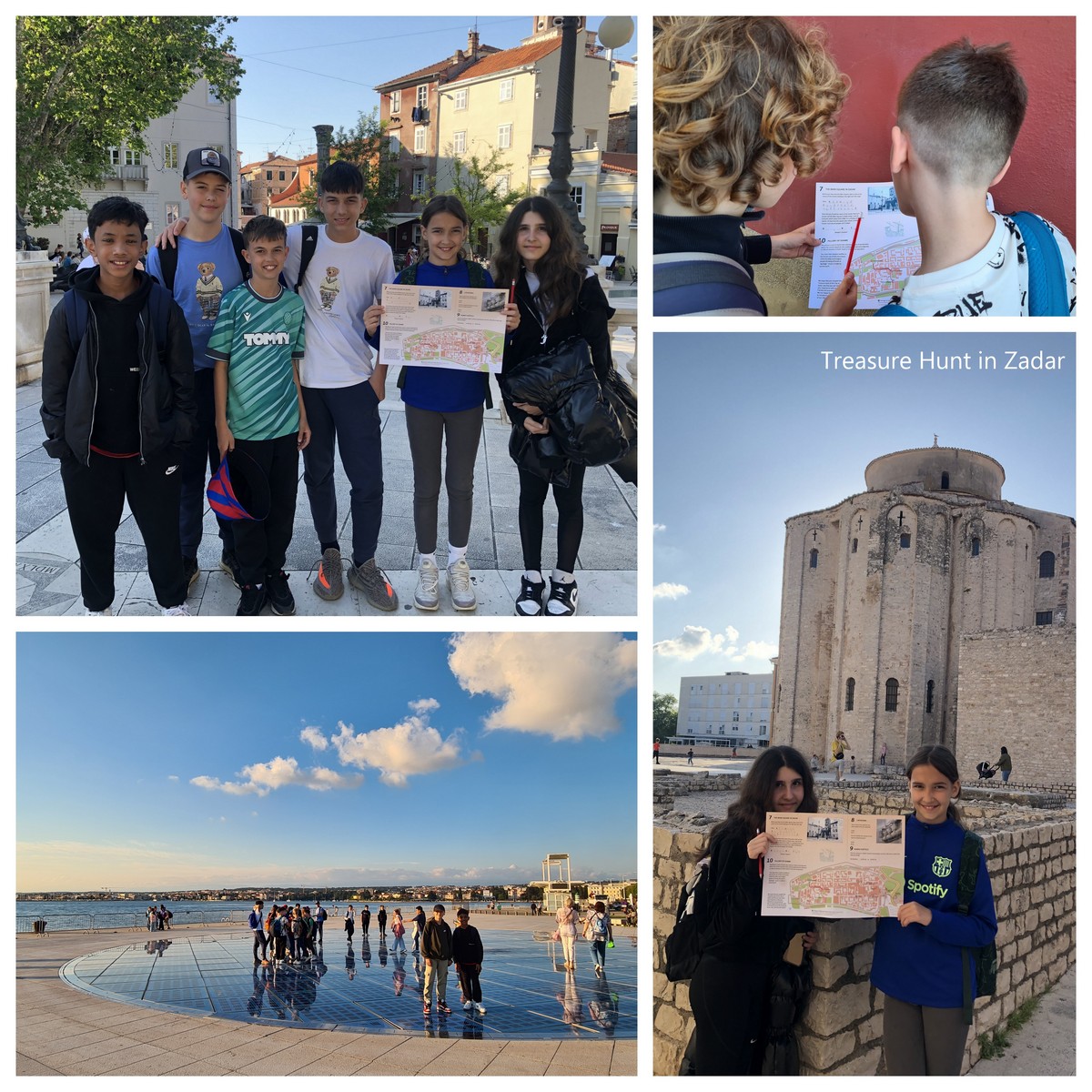 In the afternoon, we headed to Zadar, where we split into small groups for a Treasure Hunt through the Old Town. This fun activity helped us explore and learn about key landmarks like the City Square, Five Wells Square, Land Gate, St. Anastasia’s Cathedral, St. Donatus Church, the Roman Forum, Providure's Palace, and Kampo Kastelo. We ended the tour at the Sea Organ and Greeting to the Sun, just in time to enjoy the world-famous sunset.