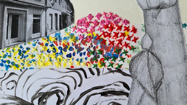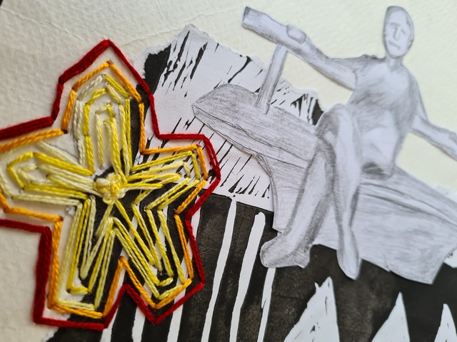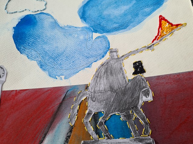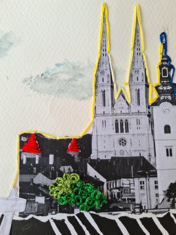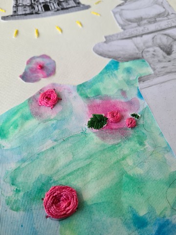 Students’ creative skills in illustration, embroidery, and kirigami were transformed into a contemporary postcard format, inviting us to actively engage through the tactile and visual experience of stitching.