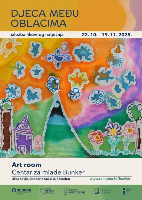 The exhibition “Children Among the Clouds”, held from 22 October to 19 November 2025 at the Bunker Youth Centre, is the result of an art competition organised by the Prica Gallery and the Samobor Public Open University. The competition was intended for preschool children and primary school pupils from Grades 1 to 8 and was created as an accompanying programme to the major exhibition “Art in the Clouds”. Its goal was to encourage children to develop imagination, emotions, and personal perspectives through artistic expression.