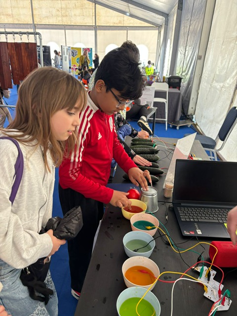 During the visit, we took part in many STEM activities. These included extracting DNA from strawberries, making music with fruits and vegetables using circuits, building ball tracks to learn about physics, solving geometry challenges with polygons, playing a fermentation card game, making our own coins, and many more hands-on experiments. These activities helped us connect what we learned in class with real life.