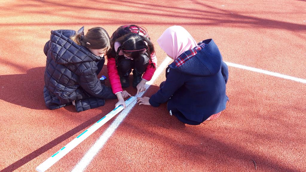 After learning about the area and perimeter PYP4 students needed to use their knowledge and practise their measurement skills outside to measure the school playground.