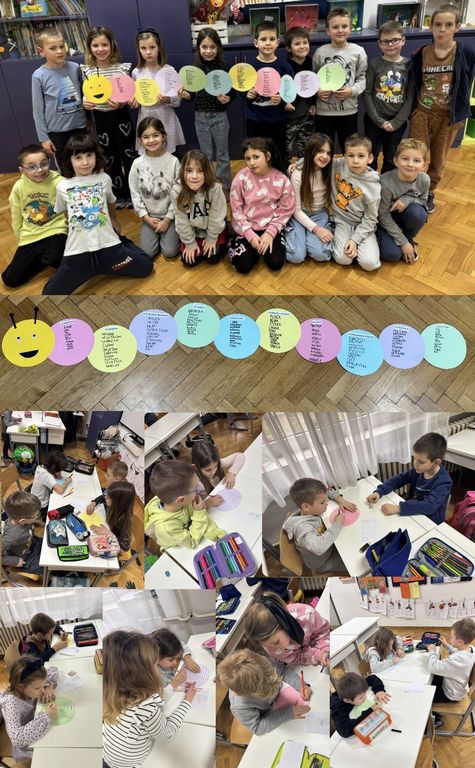 Grupnim radom izradili su veliku stonogu, u svaki njezin dio upisali su po 10 riječi iz različitih kategorija (10 životinja, 10 boja, 10 zanimanja, 10 osobina, 10 voća, 10 povrća, 10 vremenskih prilika, 10 sportova, 10 stvari u učionici, 10 odjevnih predmeta).