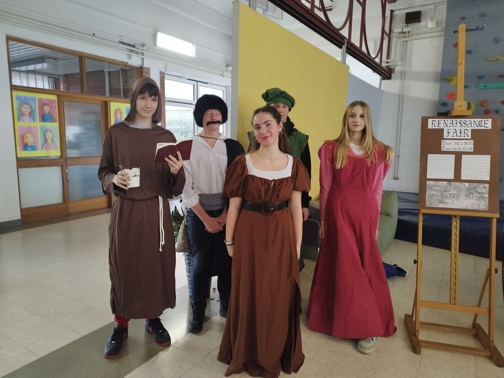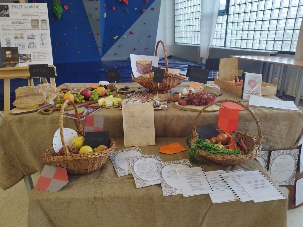 Školsko predvorje se pretvorilo u renesansni sajam na kojem se moglo upoznati Fausta Vrančića, biti Mona Lisa i isprobati kozmetiku , astronomiju i matematiku reneseanse.