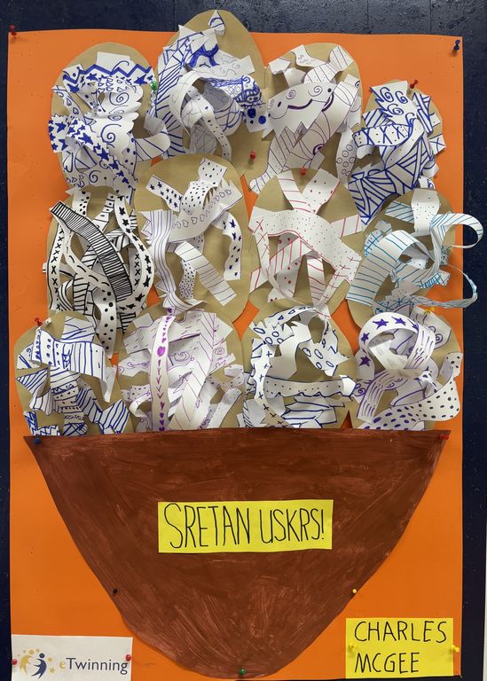 Zatim smo razgovarali o njihovim običajima u obitelji. Učenici su upoznali život i rad umjetnika Charlesa McGeea te oslikali uskršnju pisanicu poput njega.