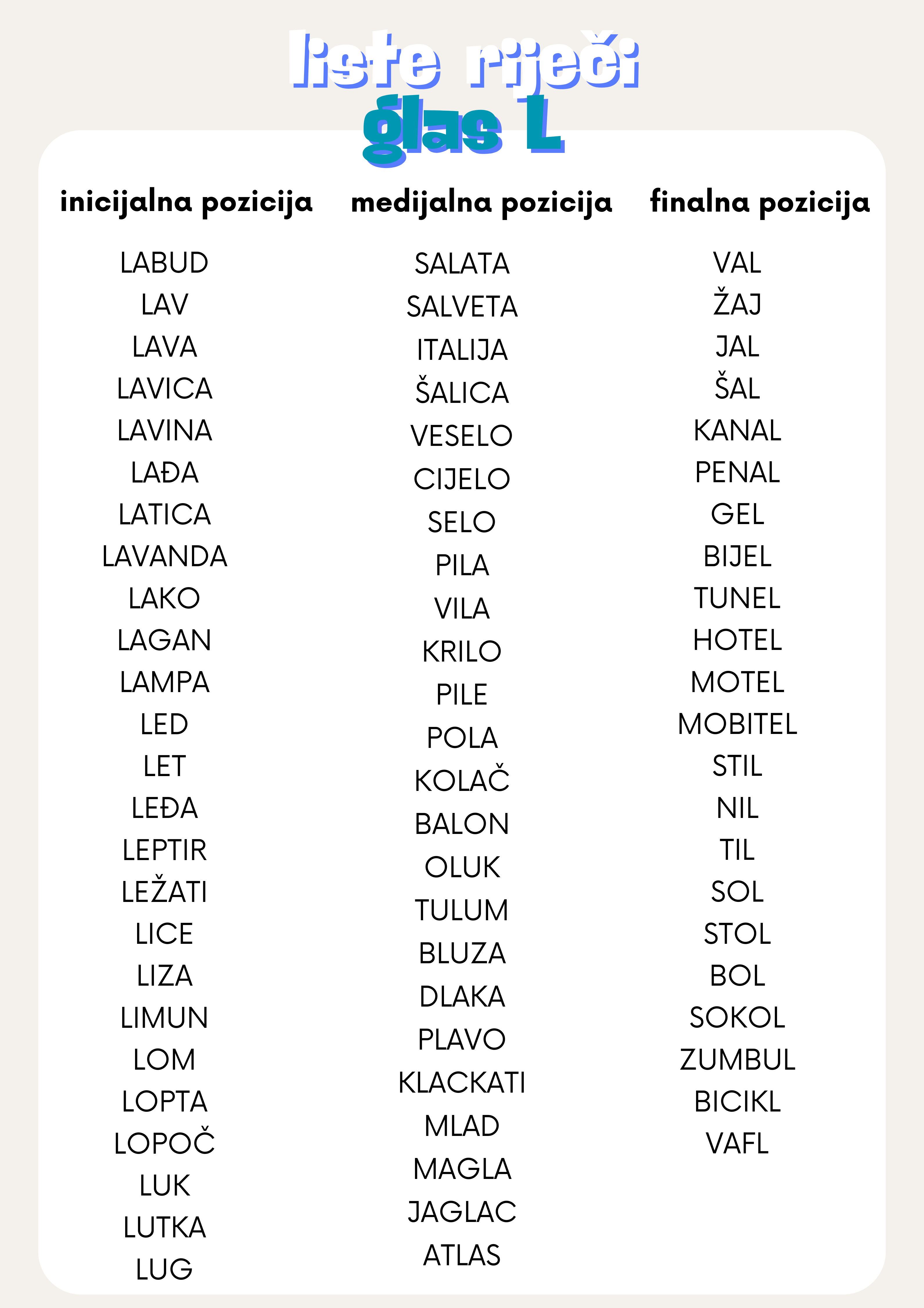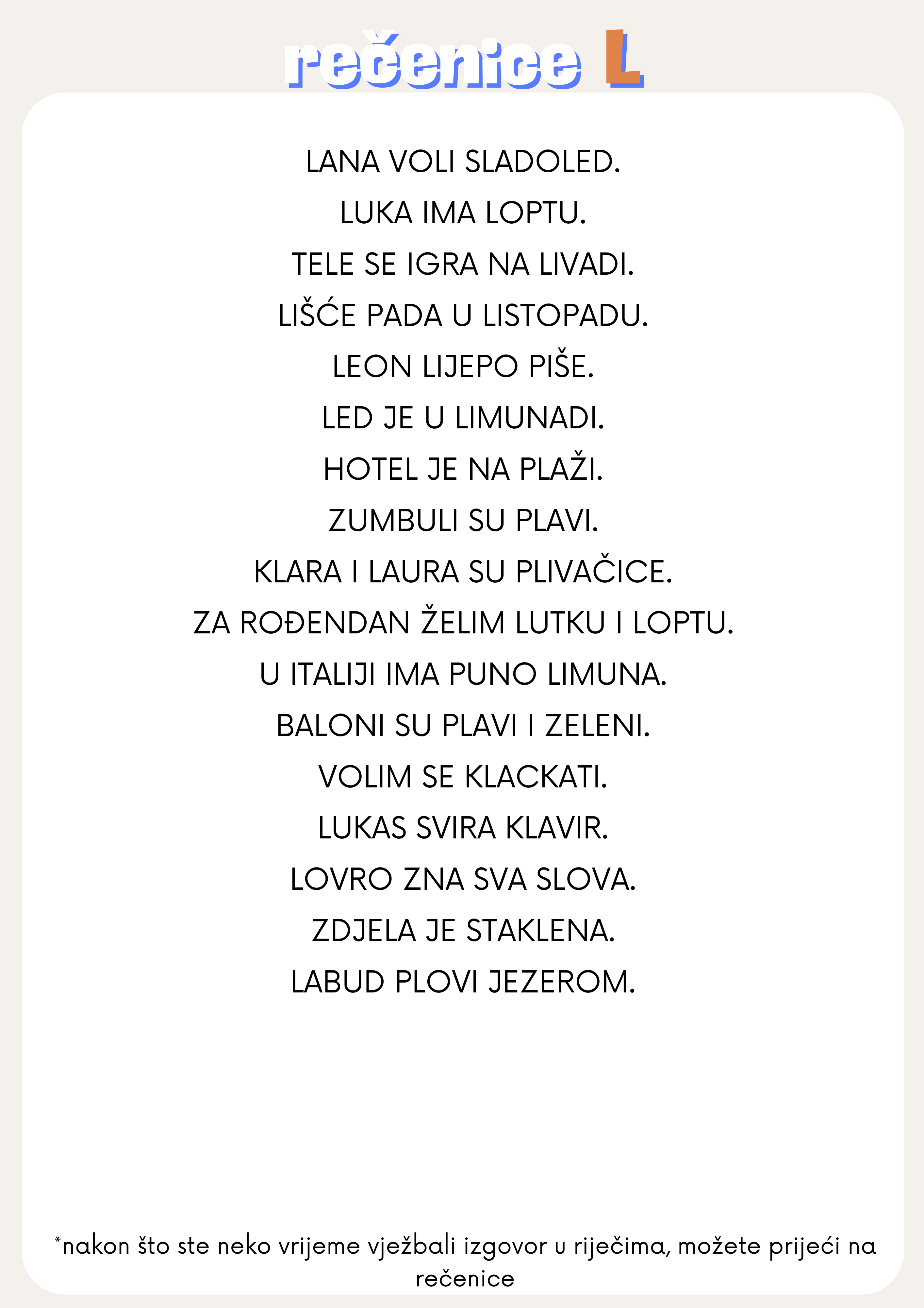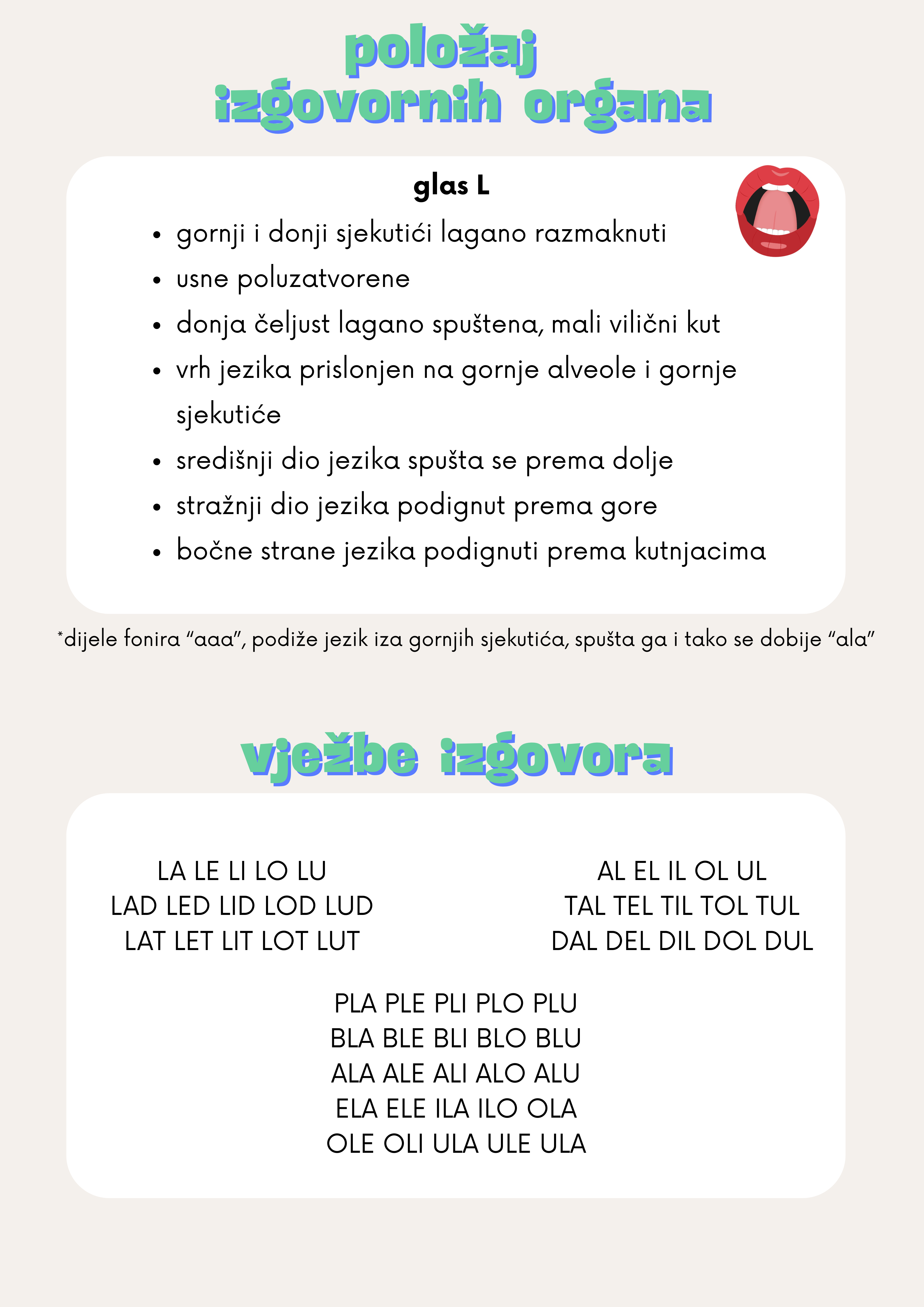Ponavljamo da je prije samog uvježbavanja izgovora, nužno da dijete pojedini glas uočava i razlikuje od ostalih, da provodi artikulacijsku gimnastiku te da poznaje i može uspostaviti pravilan položaj izgovornih organa.