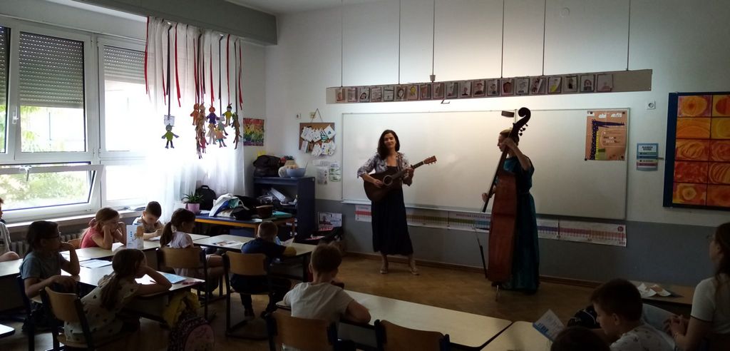 Majka jednog učenika, u suradnji s učiteljicom glazbene kulture Jelenom Galić priredila je mali koncert u učionici.