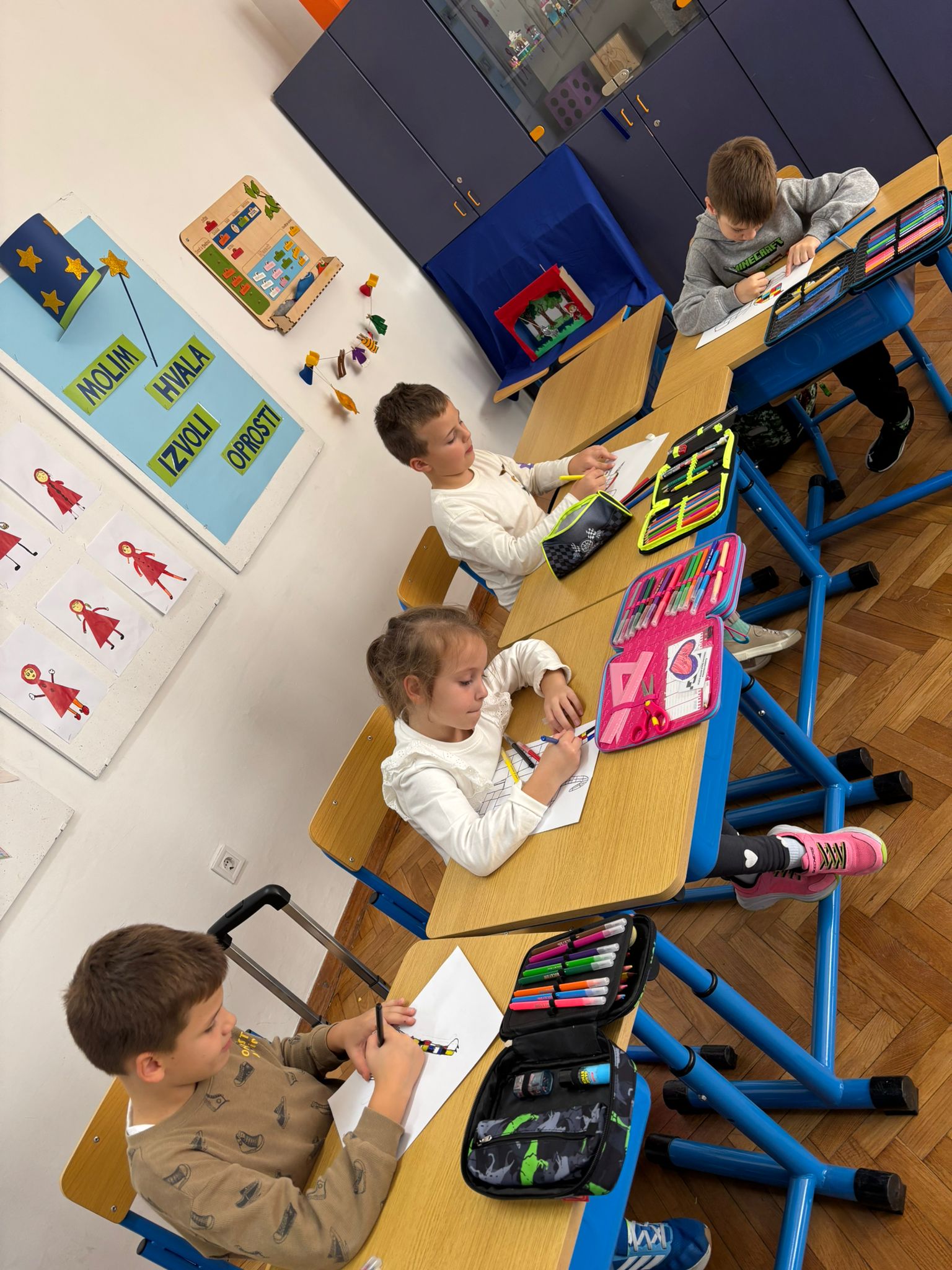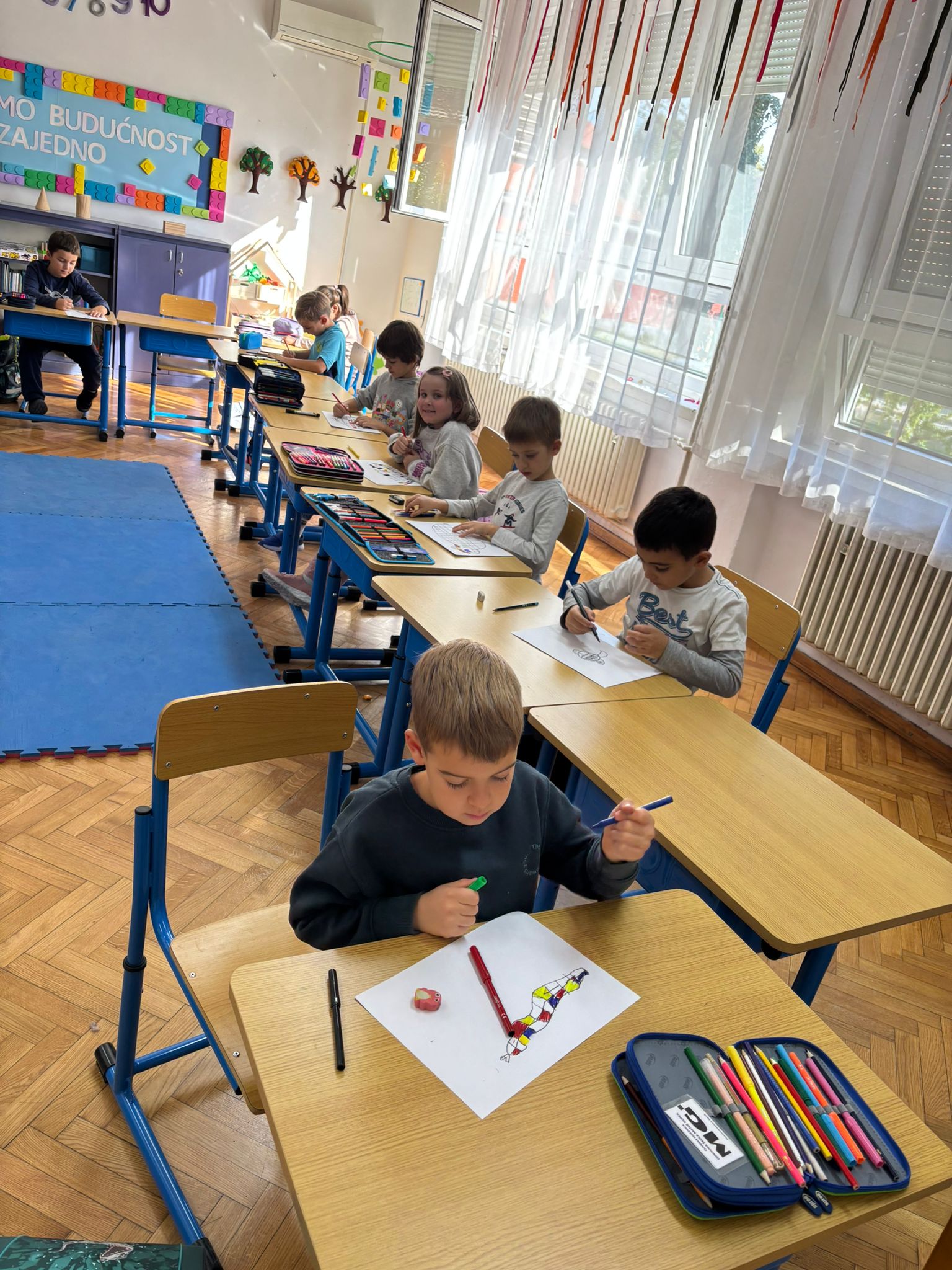 Učenici 1.b razreda u produženom boravku obilježili su Svjetski dan životinja, koji se obilježava 4. listopada. Razgovarali su o svojim kućnim ljubimcima i načinima na koje se brinu o njima. Kroz PowerPoint prezentaciju imali su priliku vidjeti fotografije ugroženih životinja u Republici Hrvatskoj, što je potaknulo raspravu o važnosti zaštite životinja. Nakon toga, odigrali su igru Pamtilica, gdje su otkrivali različite životinje, a sve je završilo kreativnom aktivnošću – slikanjem životinja po uzoru na umjetnika Piet Mondriana.