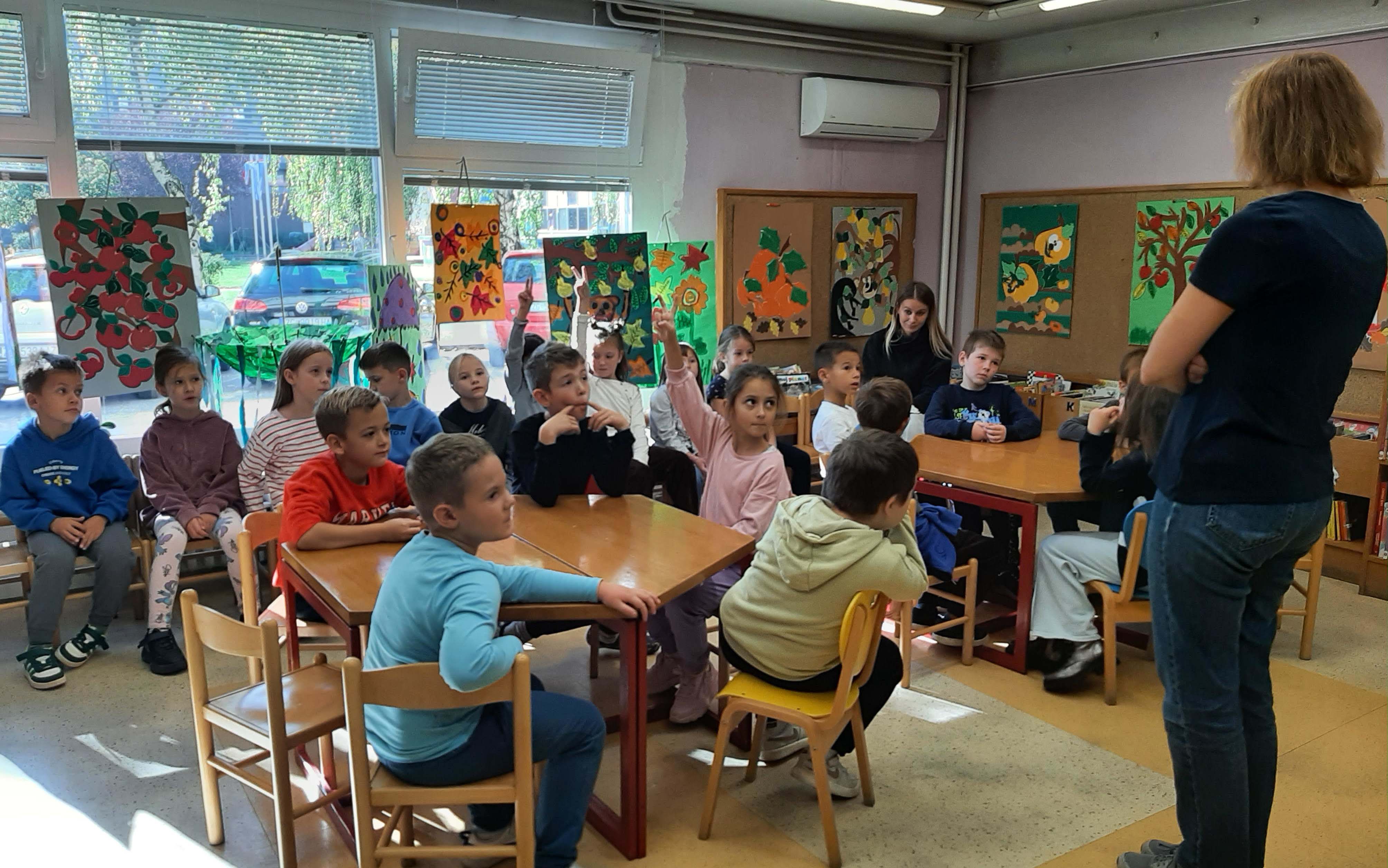 Potom su učenici upoznali prostor knjižnice i prošetali odjelima. Nakon toga uslijedila je radionica i čitanje knjige Kako je zeko zavolio knjižnicu, autorice Ivanke Ferenčić Dinješ.