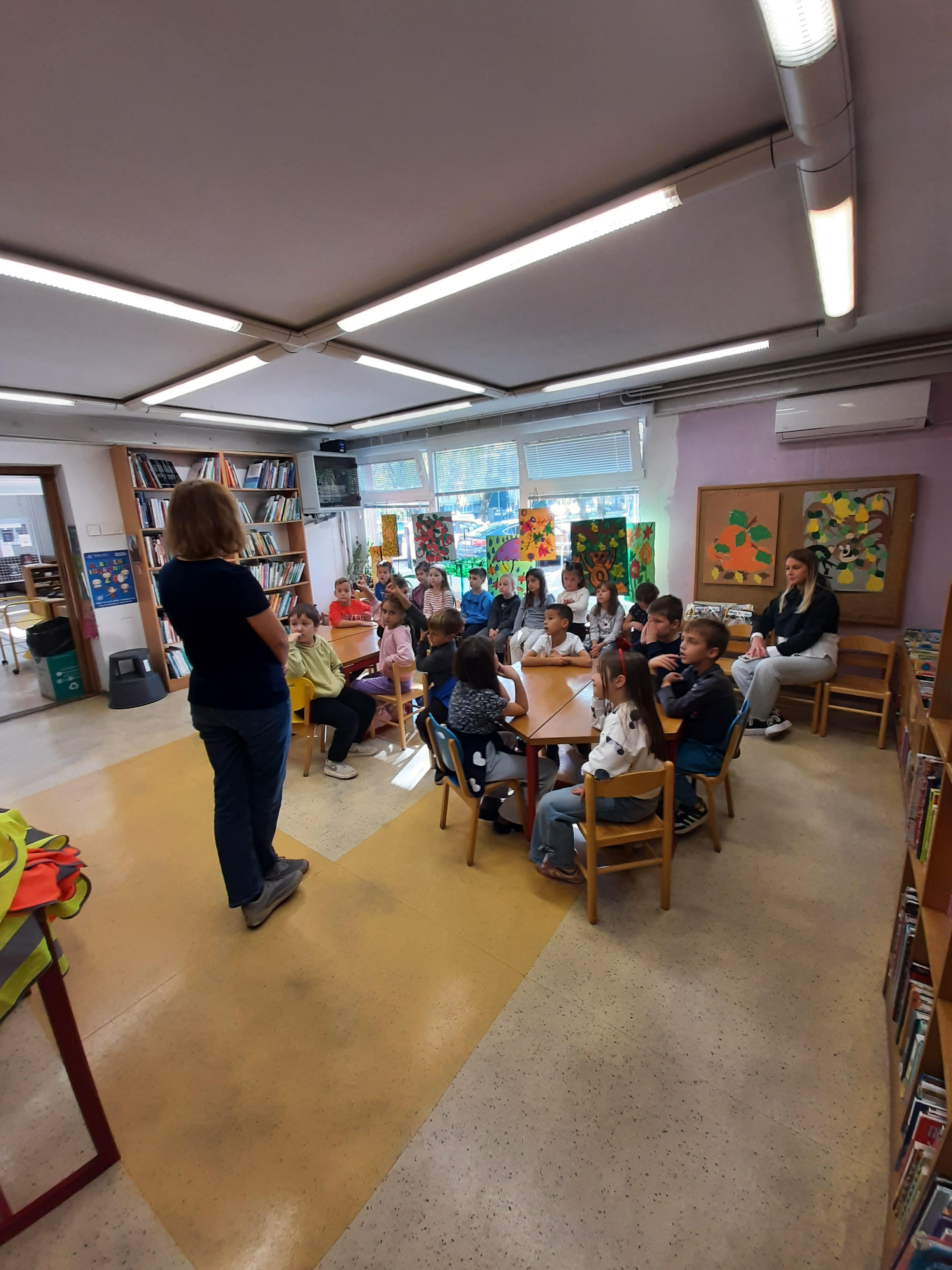 Učenici 1. C razreda su u pratnji učiteljica posjetili Gradsku knjižnicu Knežija gdje su prisustvovali radionici pod stručnim vodstvom knjižničarke Ine Tomić. Ona ih je upoznala s radom knjižničarke, pravilima o posudbi i čuvanju knjiga kao i o njihovom pravovremenom vraćanju.