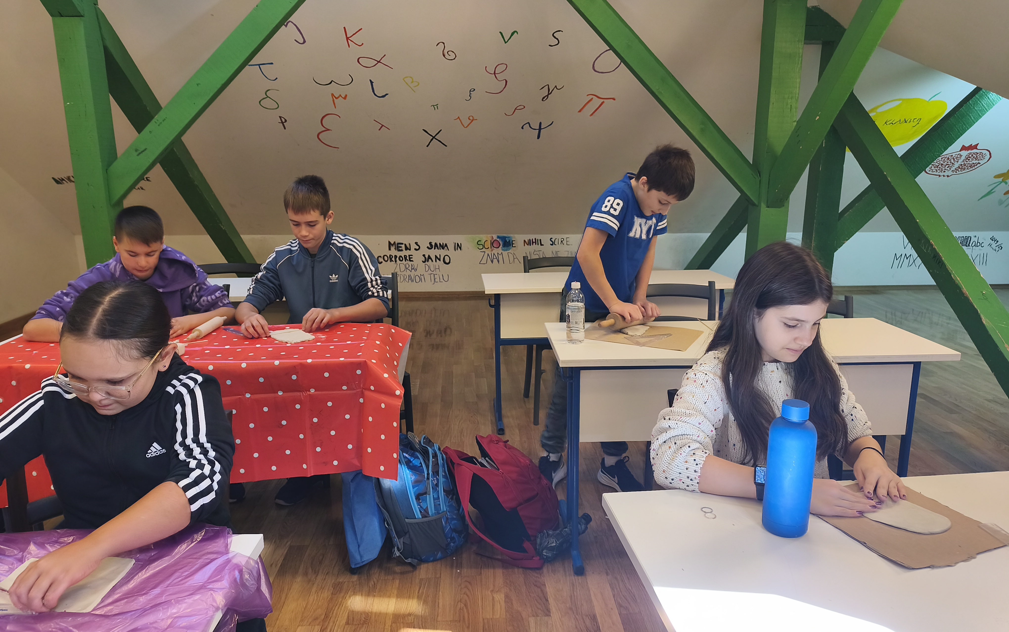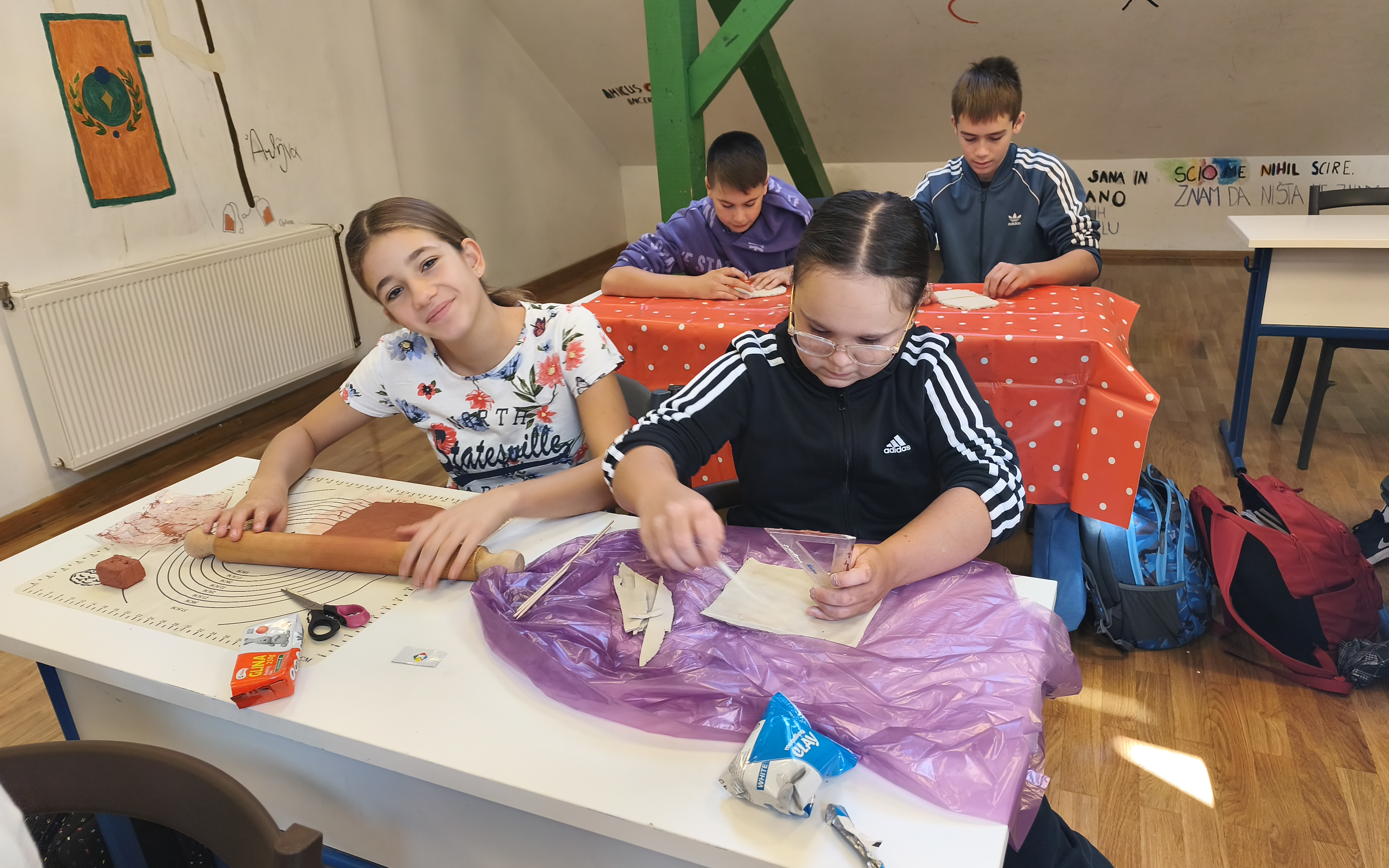 Svakodnevno u svom govoru odrasli i malo stariji učenici koriste latinske poslovice. Da bi ih što lakše zapamtili, učenici izrađuju pločice na kojima napišu odabranu latinski poslovice. Pločice izrađujemo od glinamola i ukrašavamo kako bi izgledale „staro“. Učenici su u svojem izražavanju vrlo kreativni i domišljati, a rezultate možete pogledati u galeriji.