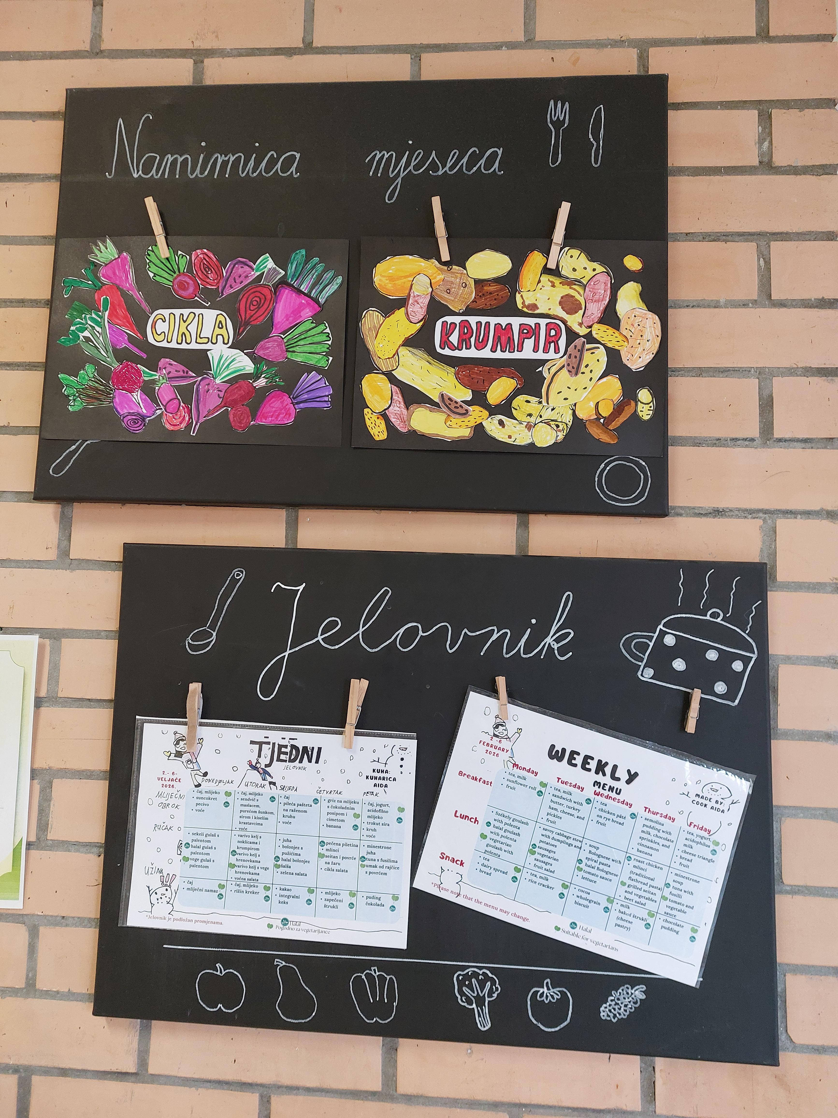 Za svaki mjesec školske godine izabrana je namirnica koja ga predstavlja i koja je taj mjesec najzastupljenija na školskom jelovniku. Svaki razred je zadužen za izradu slike namirnice mjeseca koja ukrašava ulaz u blagovaonicu.
