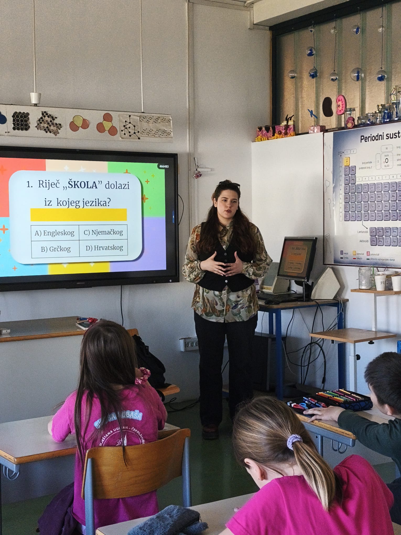 Povodom obilježavanja Dana materinskog jezika (21. veljače) u našoj školi održan je etimološki kviz za učenike 4. razreda. Kviz je organiziran u sklopu nastave Mitova i legendi, a osmislile su ga i provele profesorica latinskog i grčkog jezika Nikolina Katulić u suradnji sa školskom knjižničarkom Martom Keča.