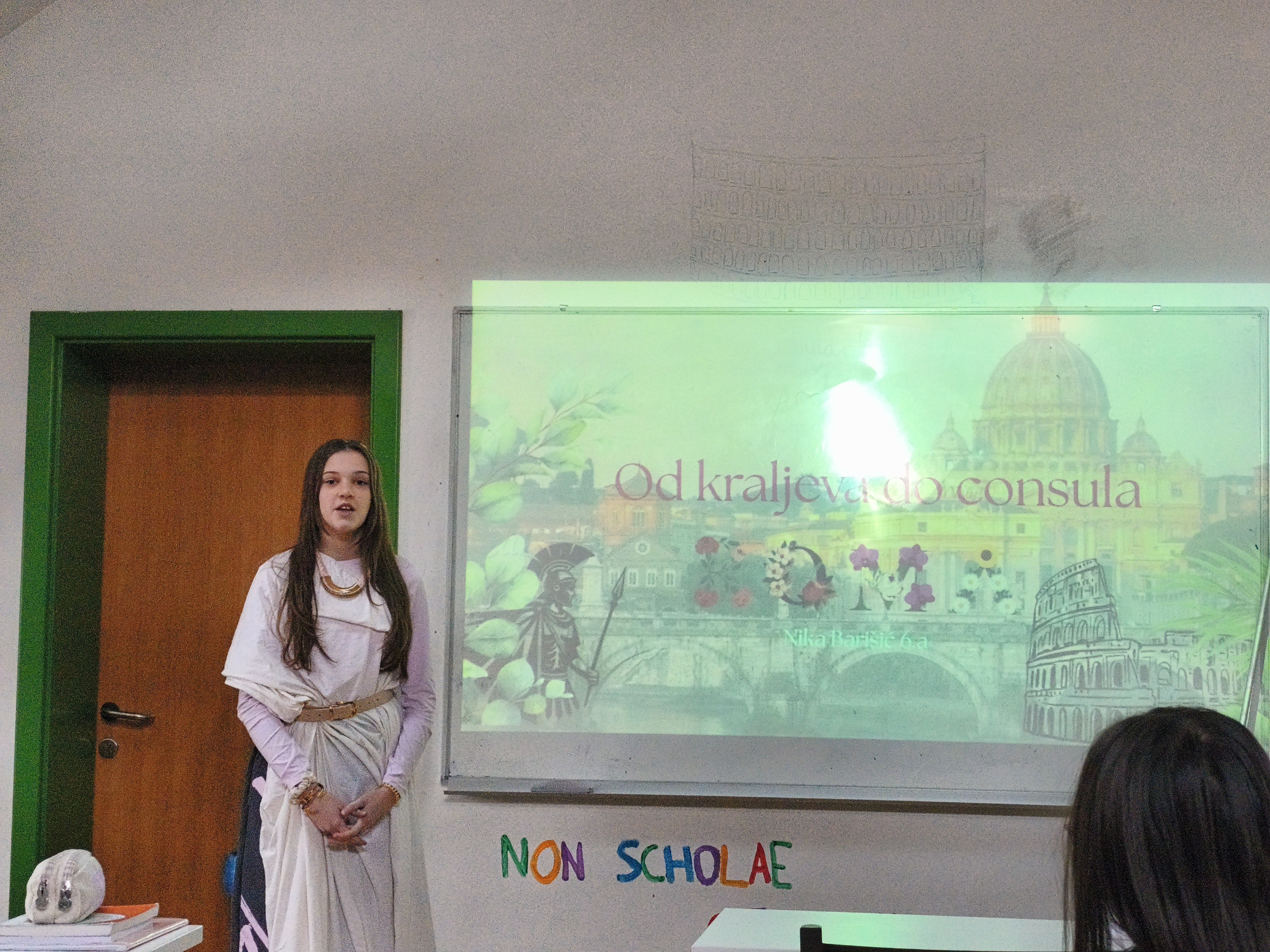 U sklopu nastave latinskog jezika, učenici 6. razreda sudjelovali su u kreativnoj i istraživačkoj aktivnosti posvećenoj razvoju Rimske Republike. Cilj zadatka bio je bolje razumjeti povijesne događaje, politički sustav i svakodnevni život Rimljana kroz aktivno sudjelovanje i različite oblike izražavanja.