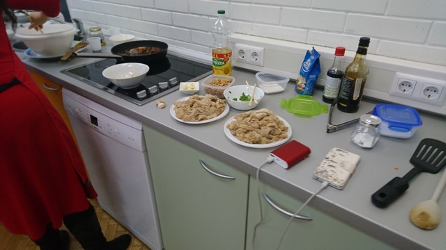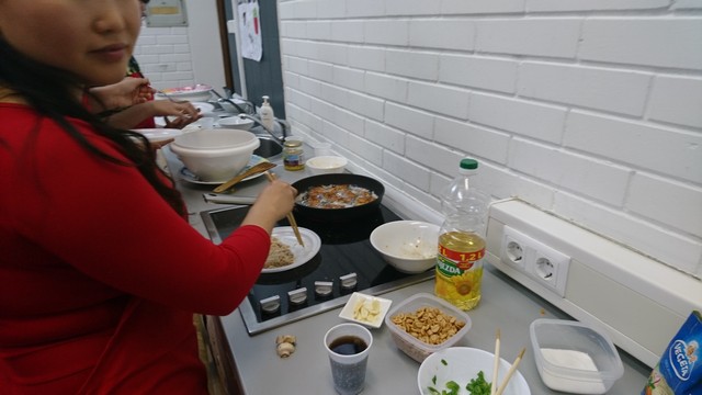 Naravno da smo svi pokušali, a neki i uspjeli, jesti štapićima. Marini smo pomogli pri pranju i rezanju mesa i povrća, kao i paniranju mesa.
