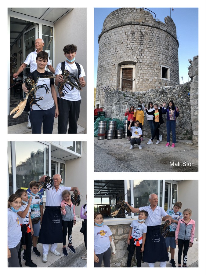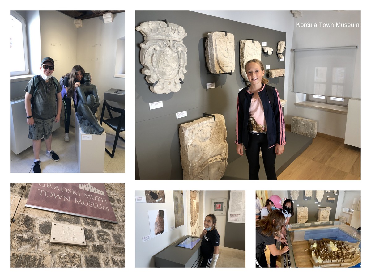 We also visited the small islands in the Korčula Archipelago - Stupe and Vrnik. Moro Beach Stupe is completely self-sustainable and environmentally friendly: solar panels collect solar energy and produce electricity, a desalination system turns the sea into drinking water, and modern purifiers solve the wastewater problem. The island of Vrnik is the site of the oldest Korčula quarry. Korčulans were skilfully working and selling their white stone all over the Adriatic area. The high quality limestone from Korčula is incorporated in some of the best known buildings in the world. There is also an old school where we sat into an old classroom equipped with the replicas of old desks, an original abacus, a blackboard, sea sponges, inkwells and writing pens. While listening the stories of our guide Ms. Sunčana and writing our name using a seagull feather pen we definitely felt the unique charm of the island of Vrnik.