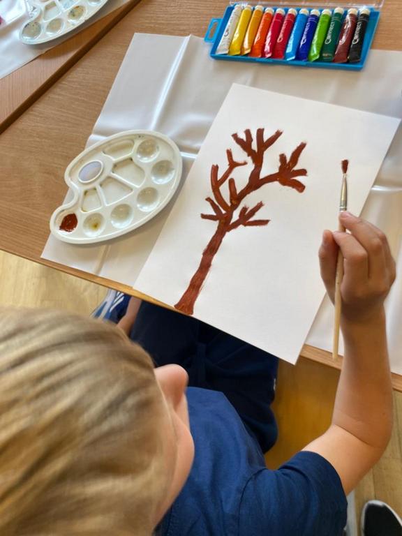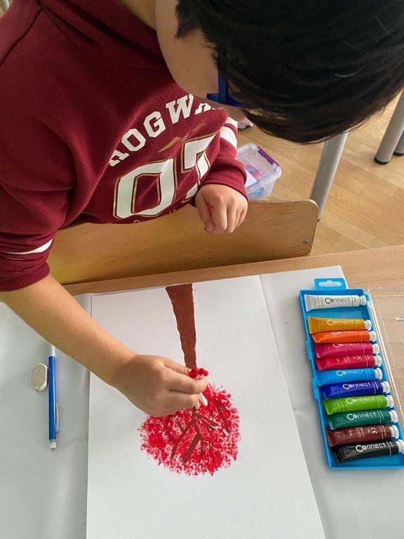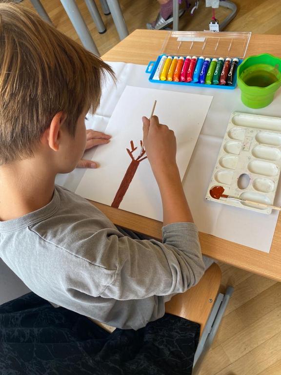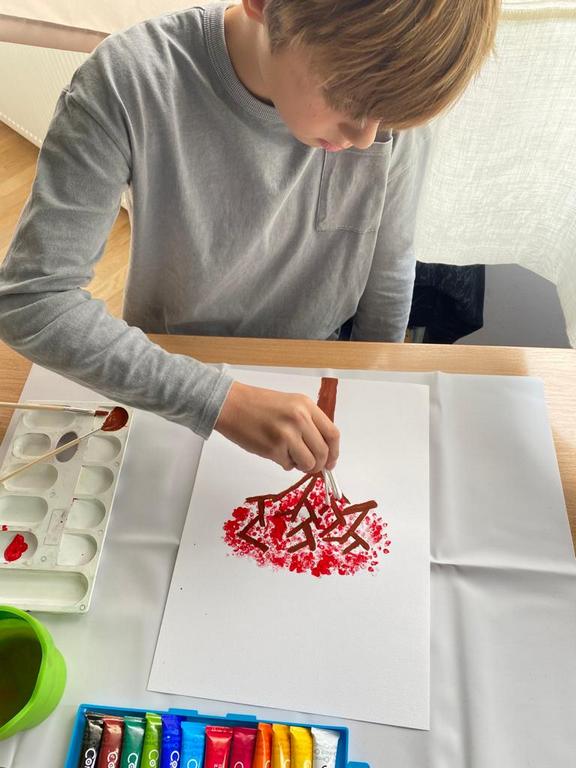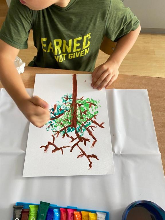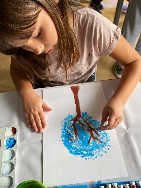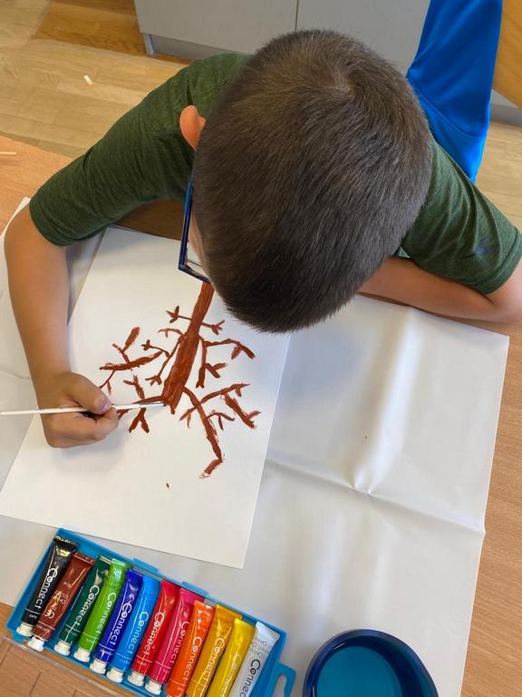 After listening to Antonio Vivaldi's The Four Seasons, we felt inspired and painted trees as they look in all four seasons. To do this, we used tempera and Q-tips. Take a look at how it turned out.