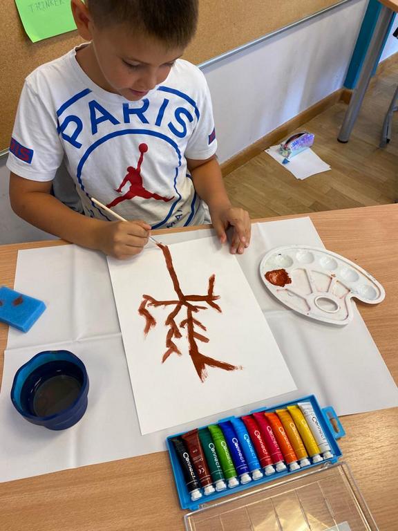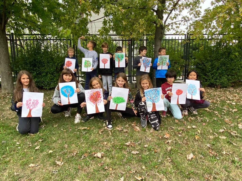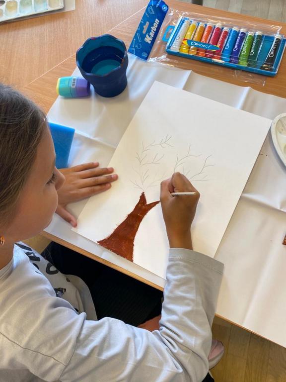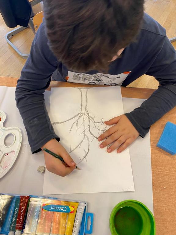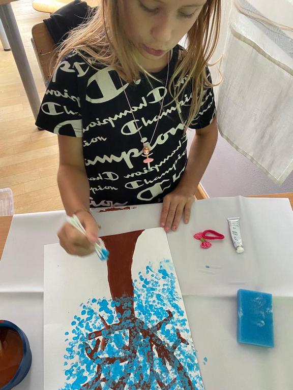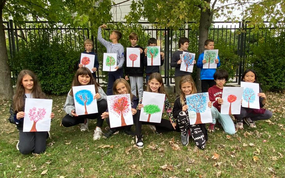 After listening to Antonio Vivaldi's The Four Seasons, we felt inspired and painted trees as they look in all four seasons. To do this, we used tempera and Q-tips. Take a look at how it turned out.