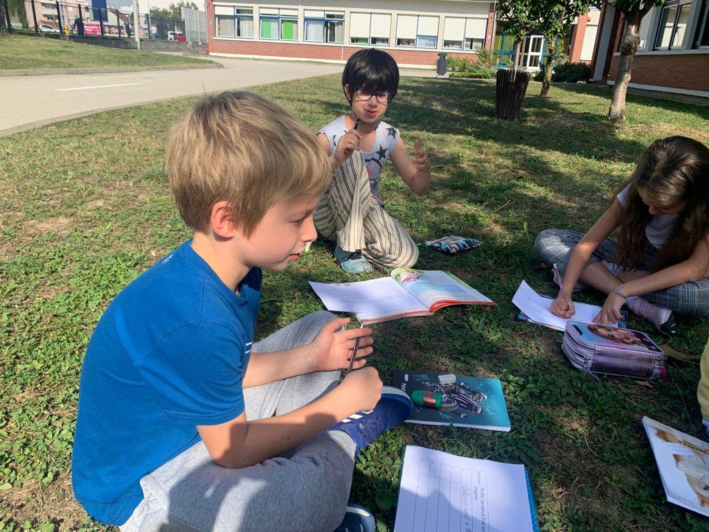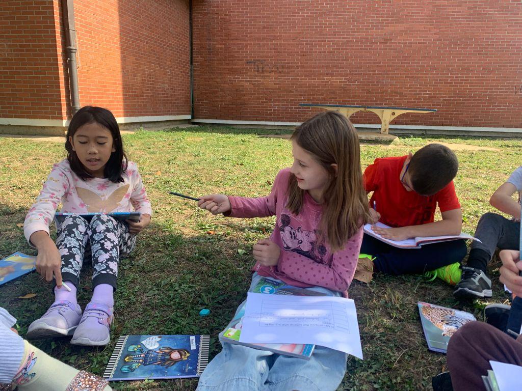 We are taking advantage of the nice weather we are having and taking our English writing workshop outside. The sun and outdoors are definitely going to bring some “fresh air” to our stories.
