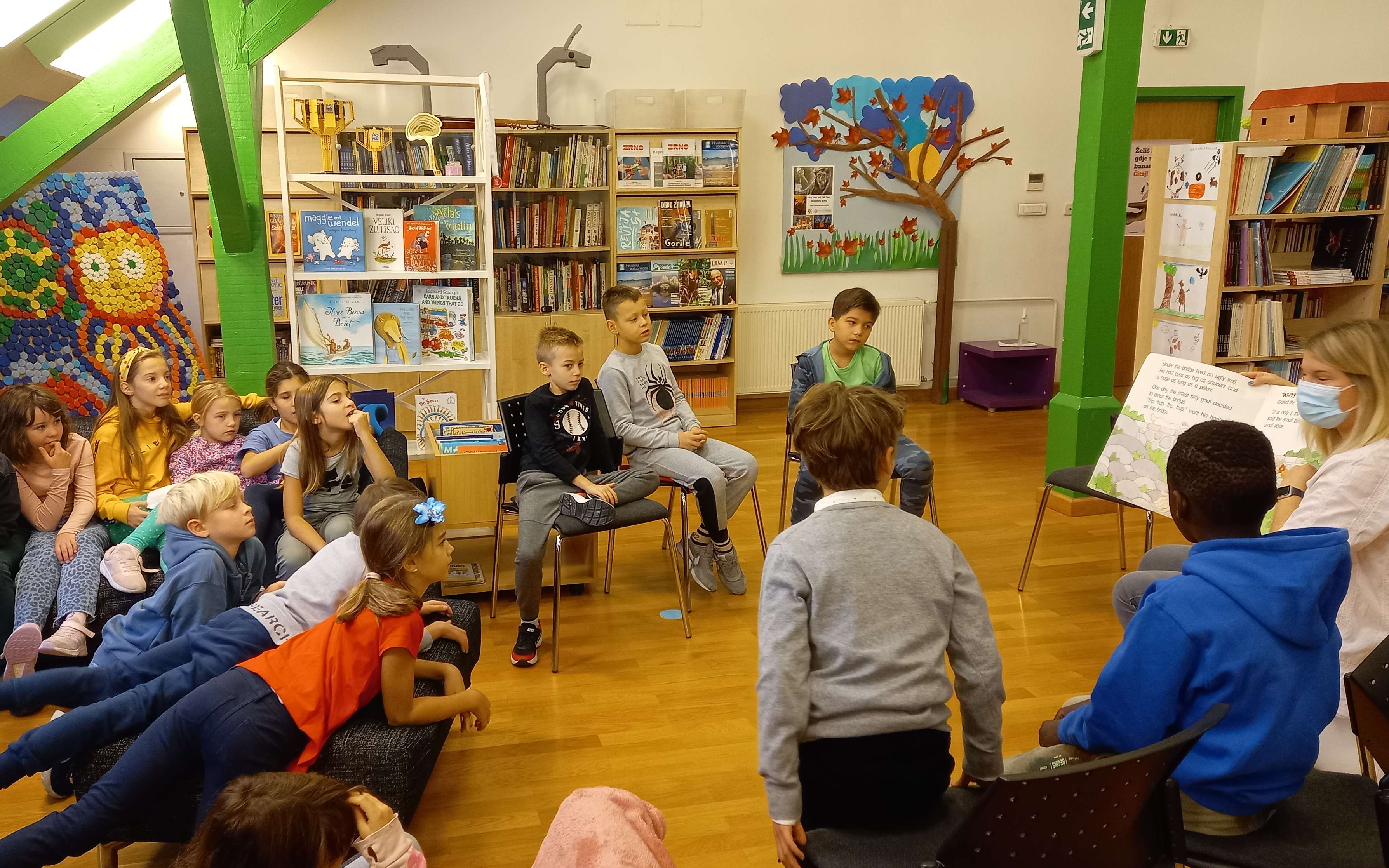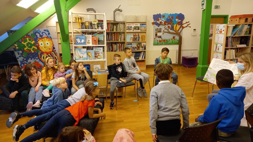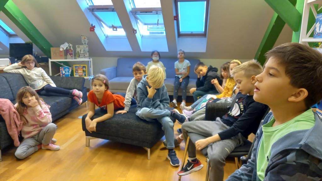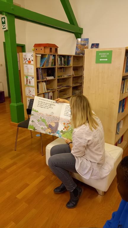 This month is a Month of Fairy Tales and Folk Tales Around the World. Our librarian teacher Mirna prepares a different folk story for us every time we visit – Slovenian, Norwegian, and other kinds of –ian :-) She reads to us with her gentle and soft voice and we are happy to answer all her questions afterwards.