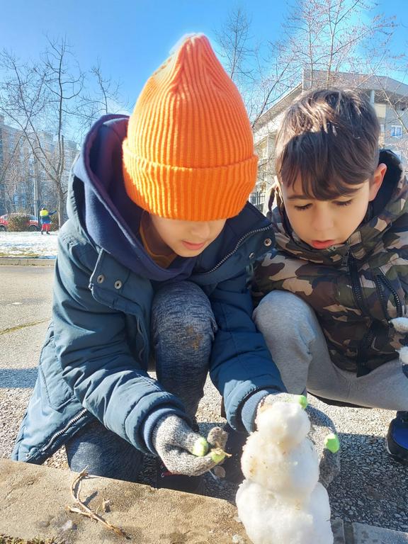 This week some snow fell and whitewashed our school playground. We could not resist the opportunity to organize The Best Snowman Competition. We were separated into pairs and needed to make a small snowman. It was fun, creative and it boosted our energy for competition.