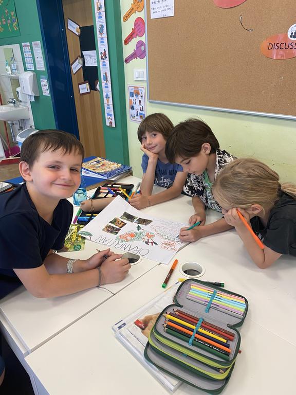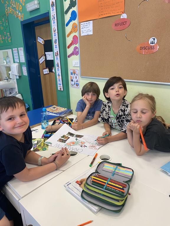 For this task, we were split into groups of four students. Each of us had a special task. One person needed to read the article and find important facts. The second person's task was to cut the photos. The other two were writing and drawing on the poster.