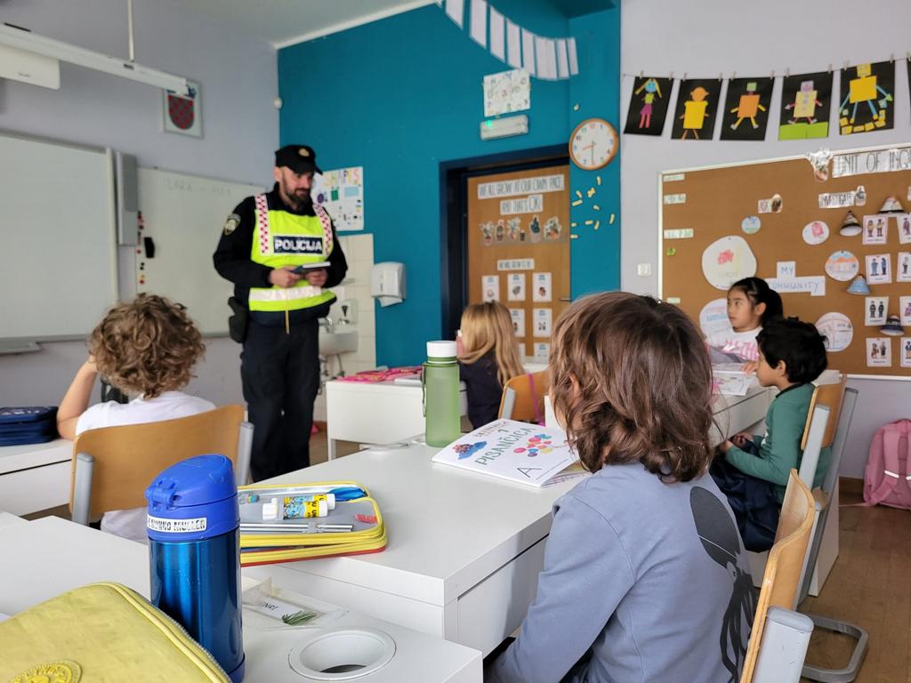 On 27 September we had a class visit from a traffic officer, explaining the importance of respecting traffic rules and the responsibility of drivers and pedestrians in our community.