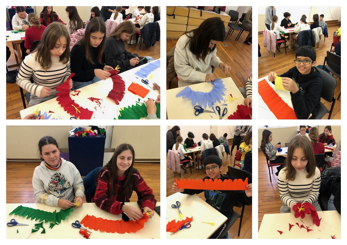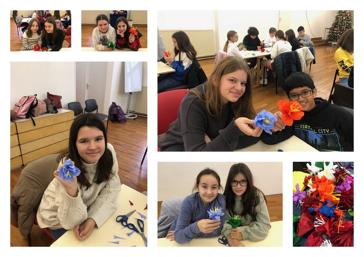 Under the expert guidance the students participated in the Kinch making workshop where they made paper flowers while learning about recognizable traditional elements of decorating the greenery in the Christmas and New Year holiday period.