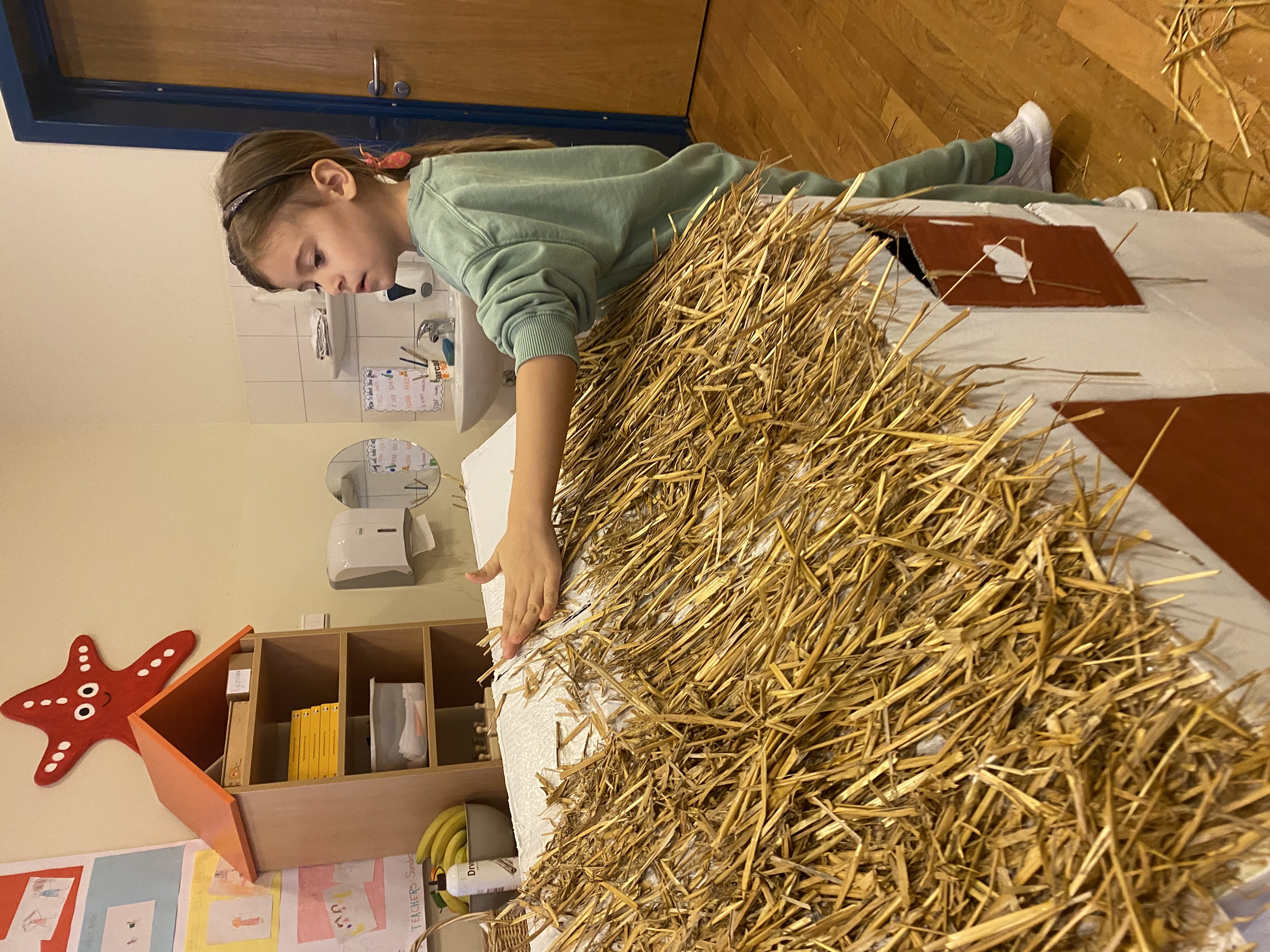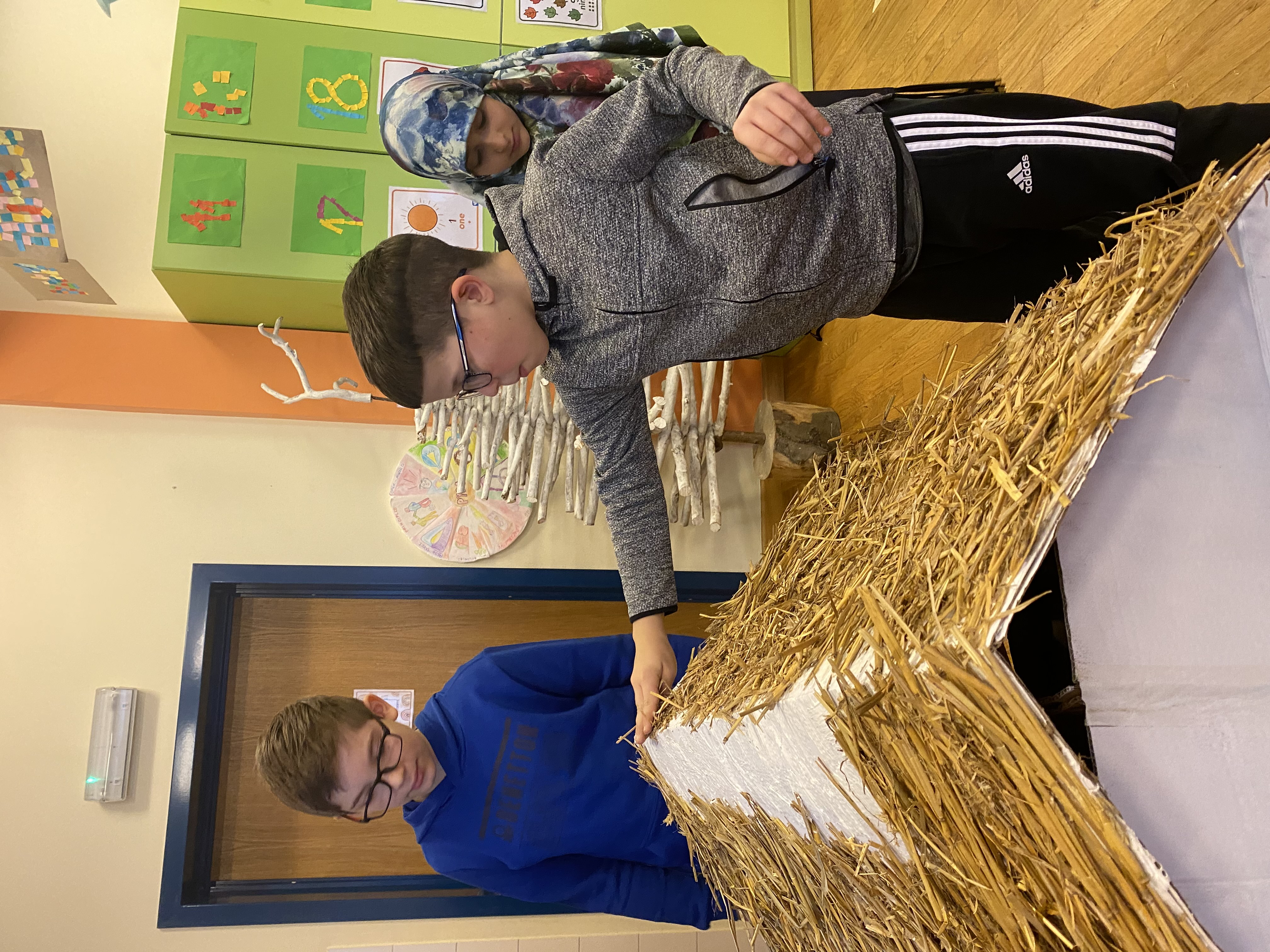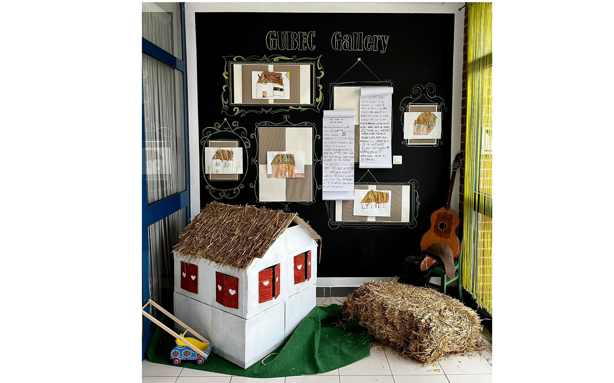 Our school was named after Matija Gubec, a well-known fighter for justice. He was a peasant who fought for peasant rights. He had a big black moustache and lived in Medieval times. At that time the houses were small, with straw on the roof. People did not have a lot of money. They inspired us to build our house from paper and straw.
