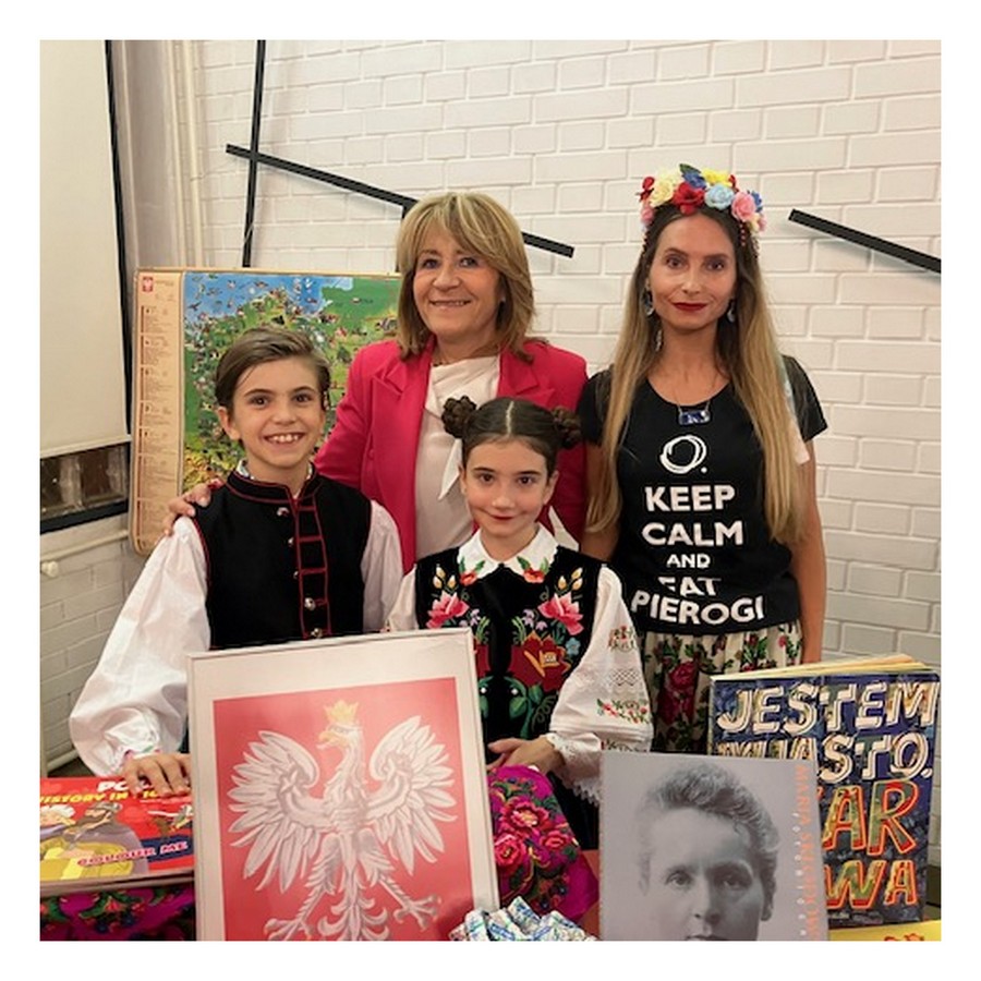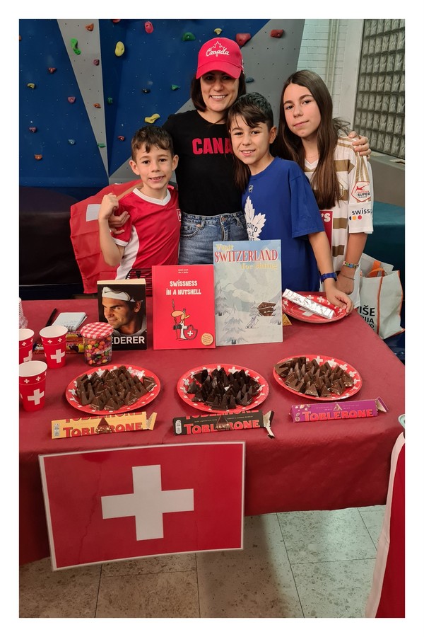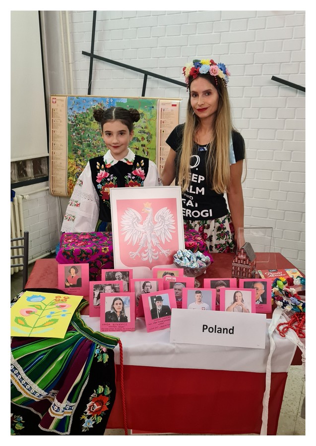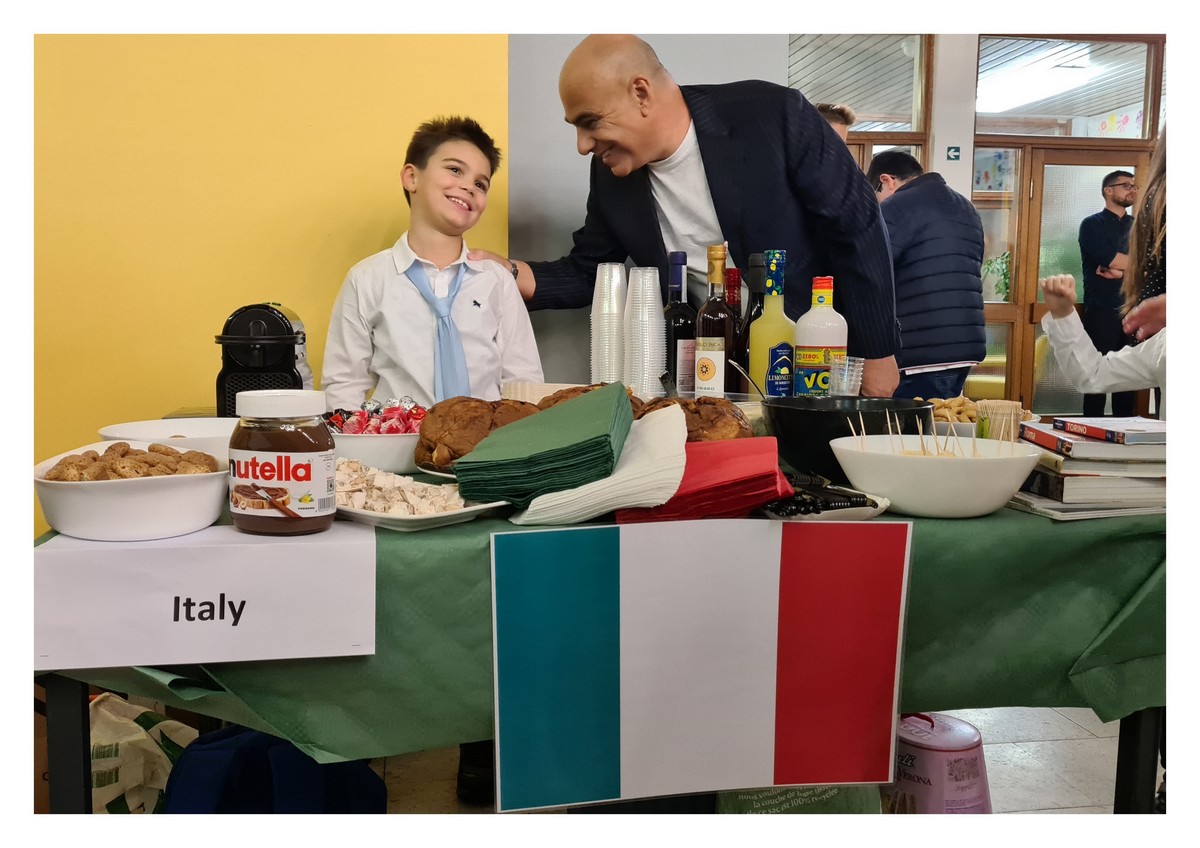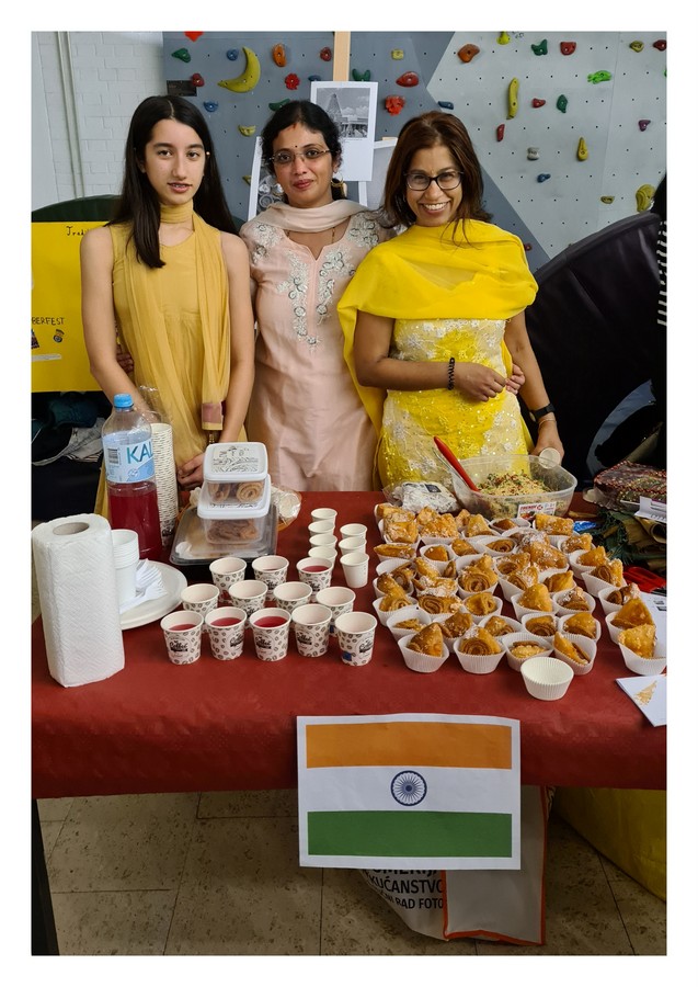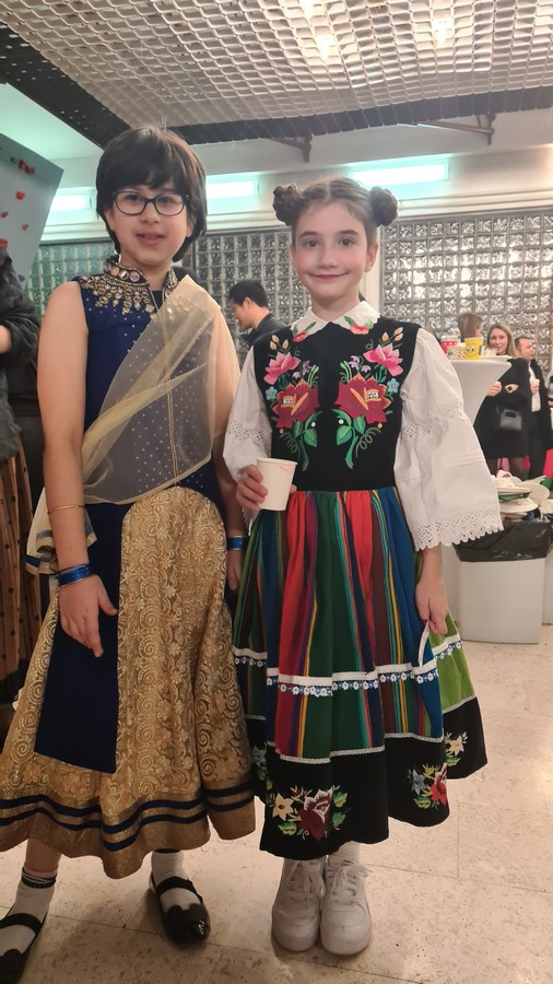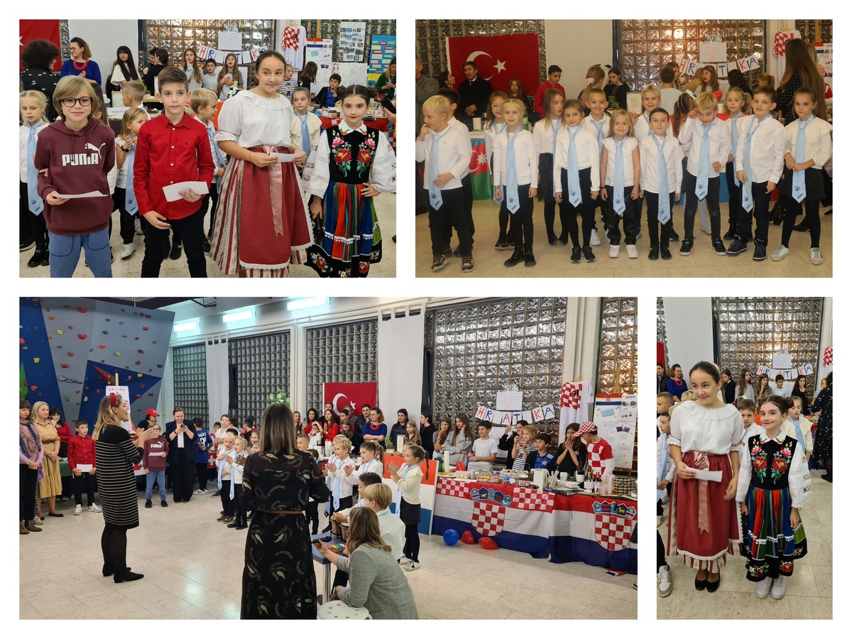 It started with a welcoming speech and an African greeting dance performed by PYP1 students. The students and parents hosted beautifully decorated stalls with displays, food and music showcasing the richness of cultural differences amongst the school population. They baked national food, wore national costumes, taught us how to play some of their traditional games and showed us some of their sacred texts, brochures, maps and posters about their culture. We travelled the world by visiting the 18 countries represented in the main hall: Albania, Bosnia and Herzegovina, Canada, China, Croatia, Germany, India, Iran, Israel, Italy, Kosovo, the Netherlands, North Macedonia, Poland, Slovakia, Switzerland, Tűrkiye and USA. In Iran we tried to read the Persian letters, in Poland we learnt about famous Polish scientists and artists, in Croatia we played BINGO and as the prizes we got their homemade bracelets and bookmarks in Croatian flag’s colours. In India we tried on a traditional Sari dress and a Bindi.