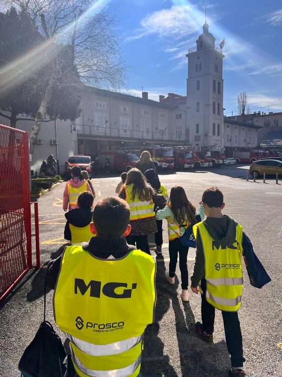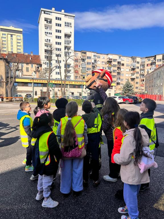 station. We learned about the important gear they use to stay safe, watched a firefighter slide down the pole, and even held the water hose, with the help of the firefighters. We also met the mascot, a bear Brave Hrvoje (Hrabri Hrvoje).