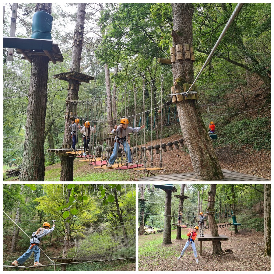 During our trip, we explored the Park's key biological, geological, and cultural historical sites. Our adventure began at Duboka Adrenaline Park, where we engaged in a variety of sports activities. After lunch, we continued our exploration in Jankovac Forest Park, taking a guided walking tour along the Count’s Educational Trail. We discovered that the peaks of Papuk rise from the depths of the former Pannonian Sea, reaching nearly one thousand meters above sea level. Famous for its geological diversity, Papuk Nature Park contains features from almost every era of Earth's geological history within a relatively small area. The park is significant for its rich variety of rocks, a large number of minerals, fossils, and geological formations, and is protected for biological, geological, landscape, and cultural-historical valuables.