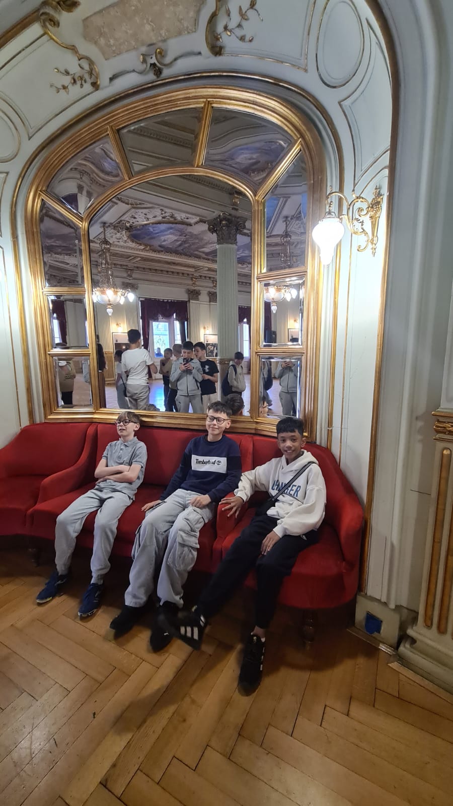 On April 30th, 2025, MYP0 and MYP1 students visited the Croatian National Theatre for an expert-guided backstage tour. First, we explored the actors’ changing rooms and went beneath the stage to see the mechanisms behind the plays’ special effects - such as small elevators that lift actors and props on and off the stage, and a carousel that can rotate during performances. We also visited the orchestral pit, the space below the stage where the musicians perform. We learned that the Croatian National Theatre hosts ballet, drama, and opera performances - all taking place on a single, large stage. Next, we visited the Emperor’s Salon, also known as the Golden Salon, and even got a glimpse of the emperor’s private bathroom, which was beautifully decorated with painted ceramics. We then went to see his private balcony. We were surprised to discover that the view from there wasn’t very good, it was mainly designed so the audience could see the emperor, rather than for him to watch the play comfortably. We also took a closer look at the audience area. We learned that the theatre currently has around 850 seats, although there used to be more. Many were removed because the room would become too crowded. Our guide also told us about the ceiling fresco and the chandelier, and we learned that the stage has nine curtains, including an iron curtain used in case of fire! At the end of the tour, we walked through the underground tunnel leading to the ballet rehearsal rooms and learned about the theatre’s internal communication system.