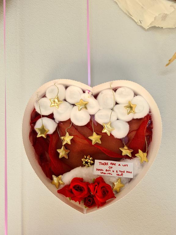 Inspired by this old tradition, MYP2 students from the International Baccalaureate (IB) program at Matija Gubec International School in Zagreb created their own Valentine’s shadow box hearts under the guidance of their Visual Art teacher, Ivana Devernay Cimić. Students dedicated their hearts to loved ones: family members, friends, and special people in their lives. They designed their heart-shaped artworks using the assemblage technique, combining different materials and objects while paying attention to composition and clear visual messages. Alongside the visual elements, they included written messages in their mother tongues. This exhibition celebrates the idea that love can be preserved, shaped, and shared, inside a frame that grows richer in meaning over time.